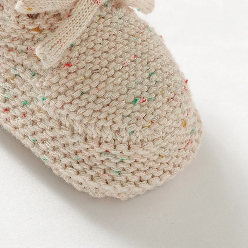 Primeros caminantes para bebés, cómodos, de punto de Color puro, con lazo netural para recién nacidos, niños pequeños, niñas, suela suave antideslizante