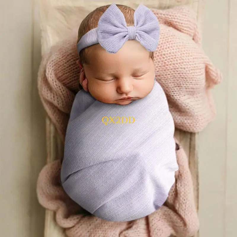 Juego de accesorios para fotos de bebés: nuestros accesorios para fotografía de bebés contienen 2 piezas, 1 diadema con lazo, 1 manta envolvente, material transpirable que es cómodo para usar el bebé, adecuado para niños o niñas recién nacidos.