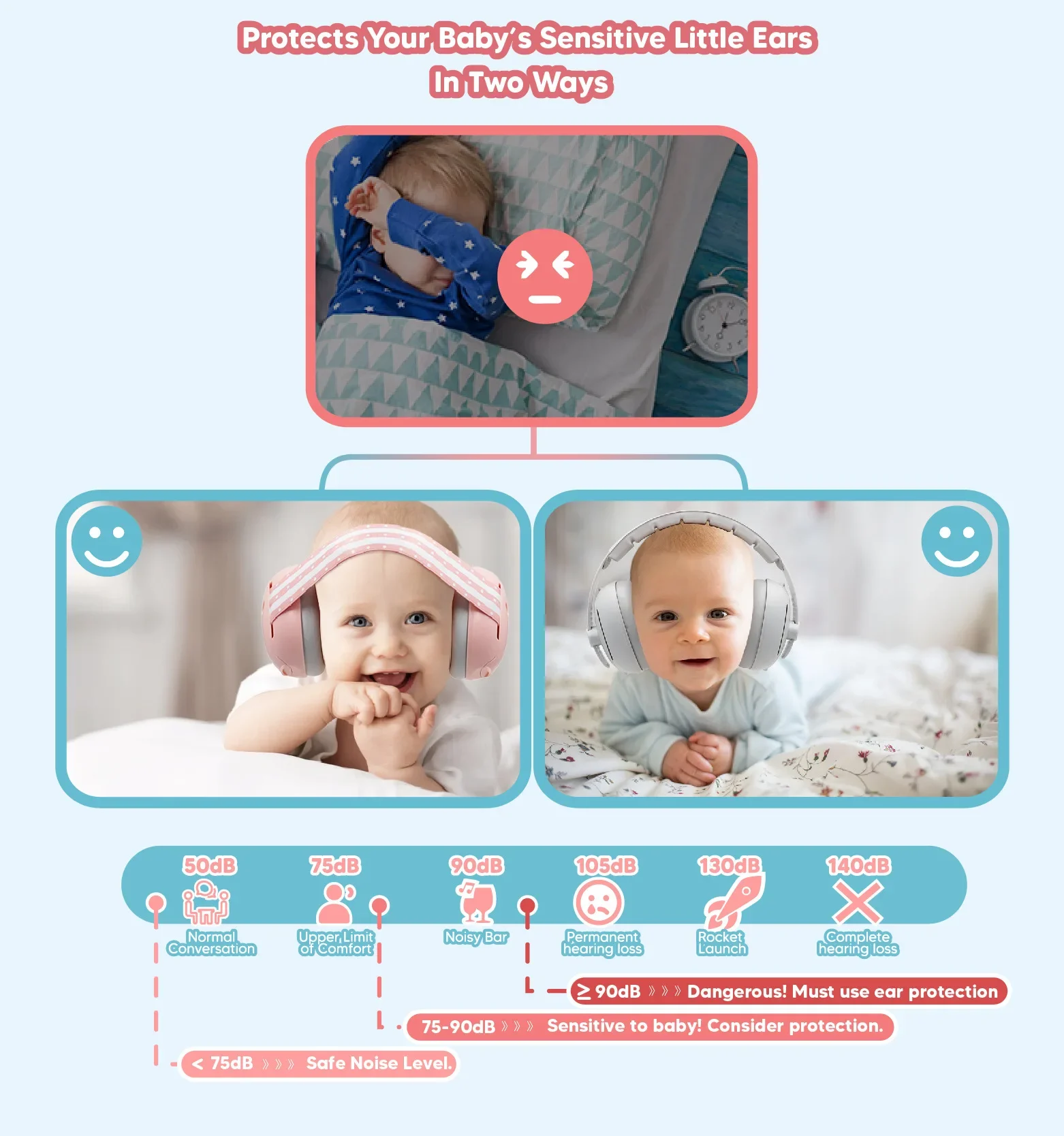 Protección auditiva para bebés y niños pequeños, orejeras elásticas con reducción de ruido, auriculares para bebés contra daños auditivos, mejoran el sueño