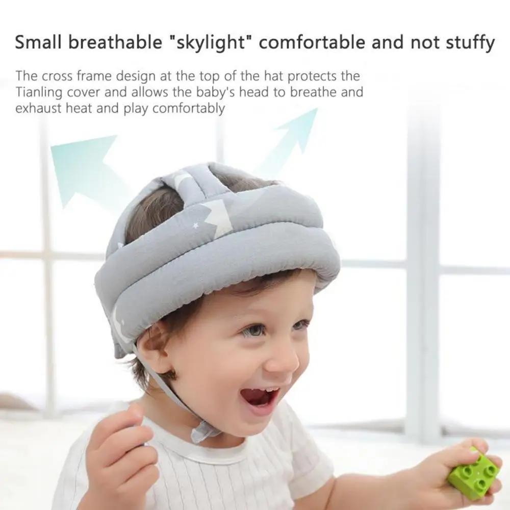 Este cojín protector de cabeza para bebé tiene la forma de un casco y está diseñado para prevenir lesiones en la cabeza. Es ajustable para adaptarse a cualquier tamaño de cabeza y no irritará la piel sensible. Perfecto para climas cálidos, ya que evita la sudoración. Mantenga a su bebé seguro y cómodo en todo momento.