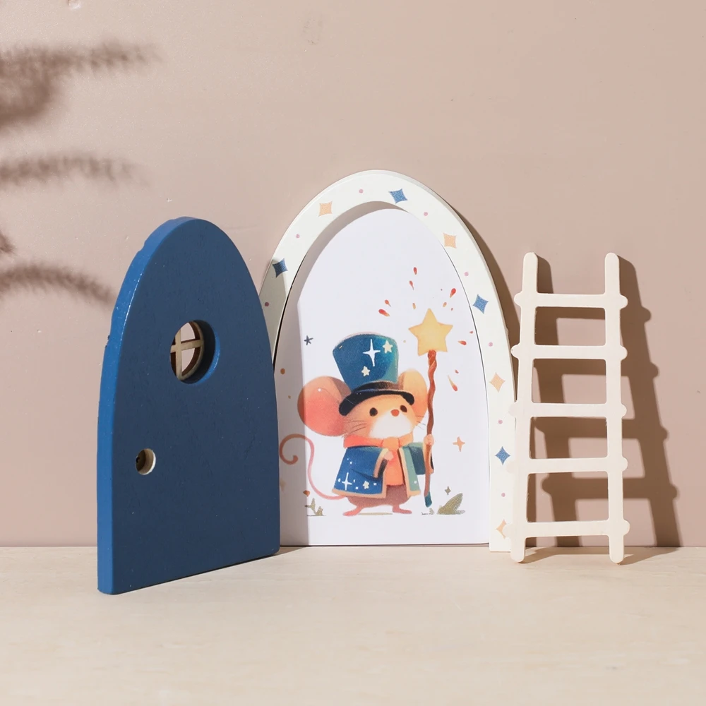 Dibujos animados puerta de elfo decoración de la habitación casa de muñecas Mini decoraciones para el hogar puerta de elfo de hadas decoración de estilo de cuento de hadas adornos artesanales