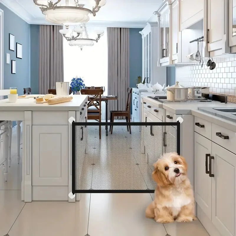 Comprar Puerta de seguridad para bebés, barrera para mascotas, valla portátil de malla para escaleras, entrada, puerta interior, protector de separación para perros, ganchos aislados para bebés, parque infantil