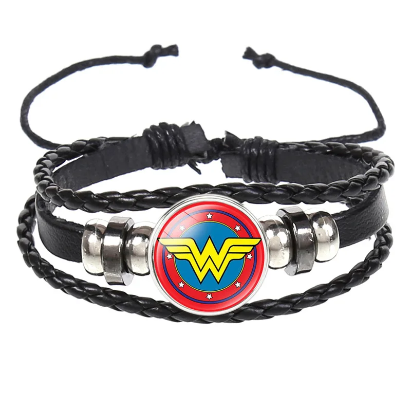 Comprar Pulsera de piel de vaca que brilla en la oscuridad de Marvel, cuentas tejidas a mano creativas, joyería de pulsera de cuero de estudiantes periféricos de Anime, moda