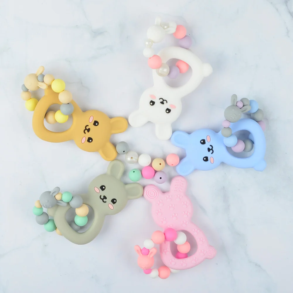 Comprar Pulsera de silicona para morder con forma de conejo para bebé, mordedor redondo de cuentas de silicona, joyería para mascar de enfermería, juguete de grado alimenticio, Cuidado Oral, BPA Fr