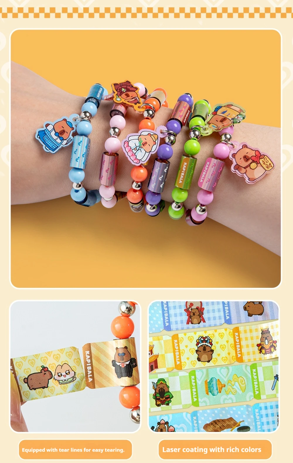 Pulseras adhesivas de cuentas de capibara, bonito hámster pequeño, pulsera con dijes DIY, joyería hecha a mano divertida, regalo de fiesta de cumpleaños para niñas