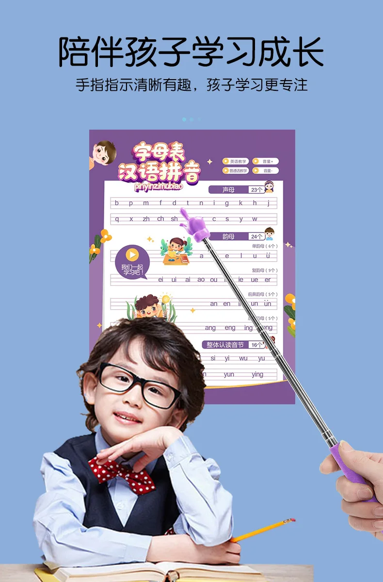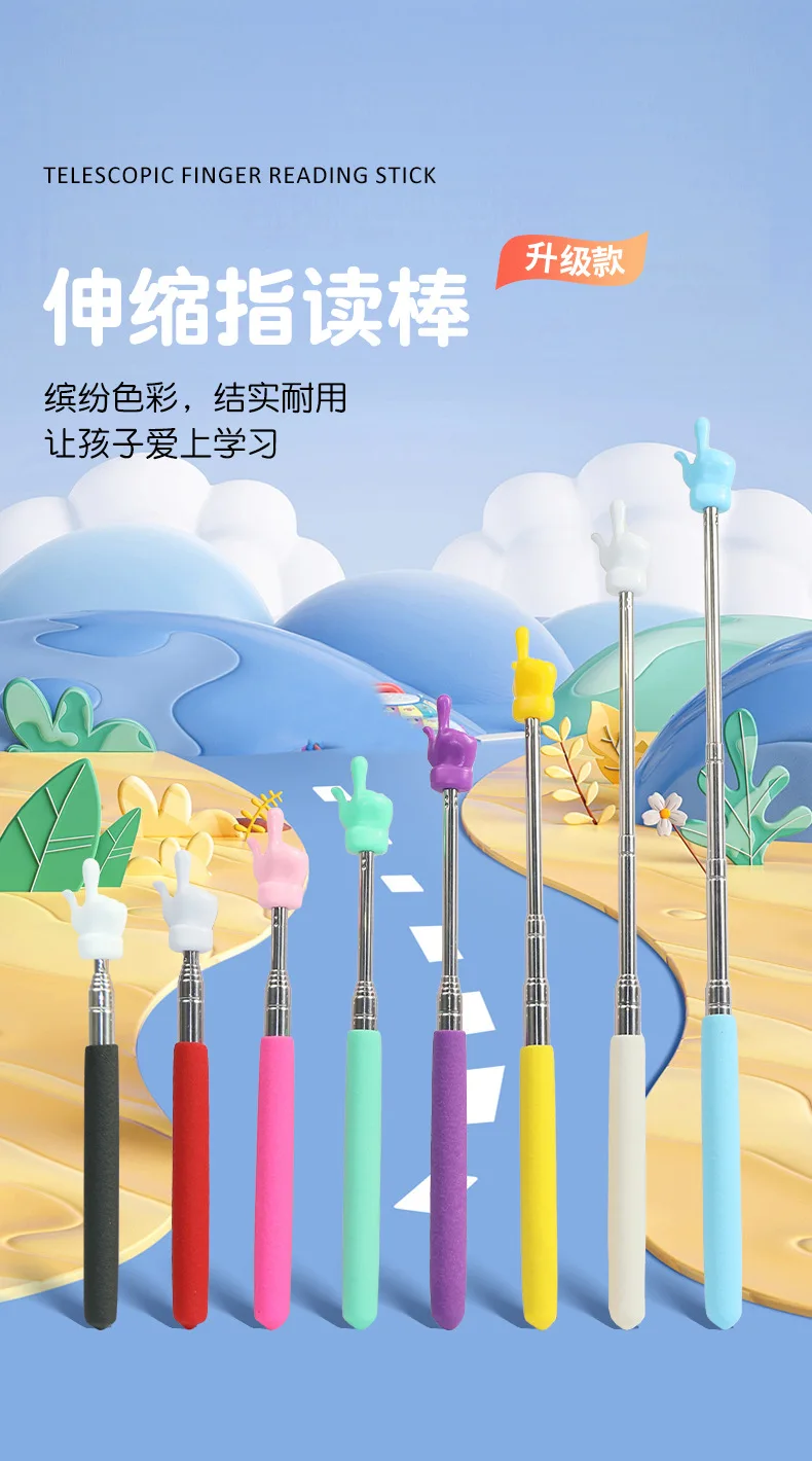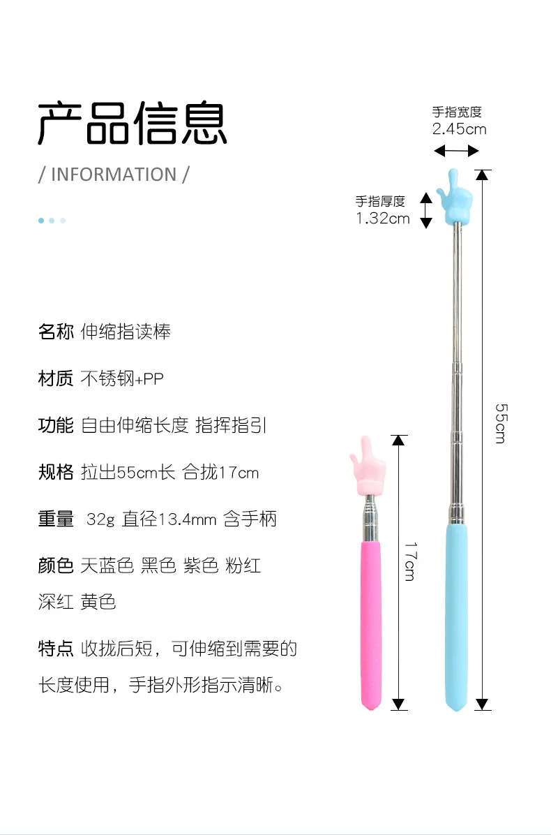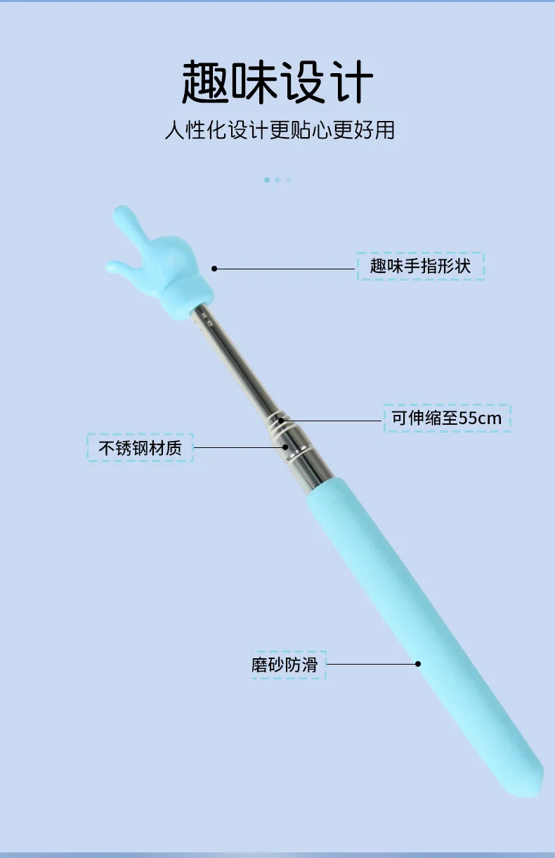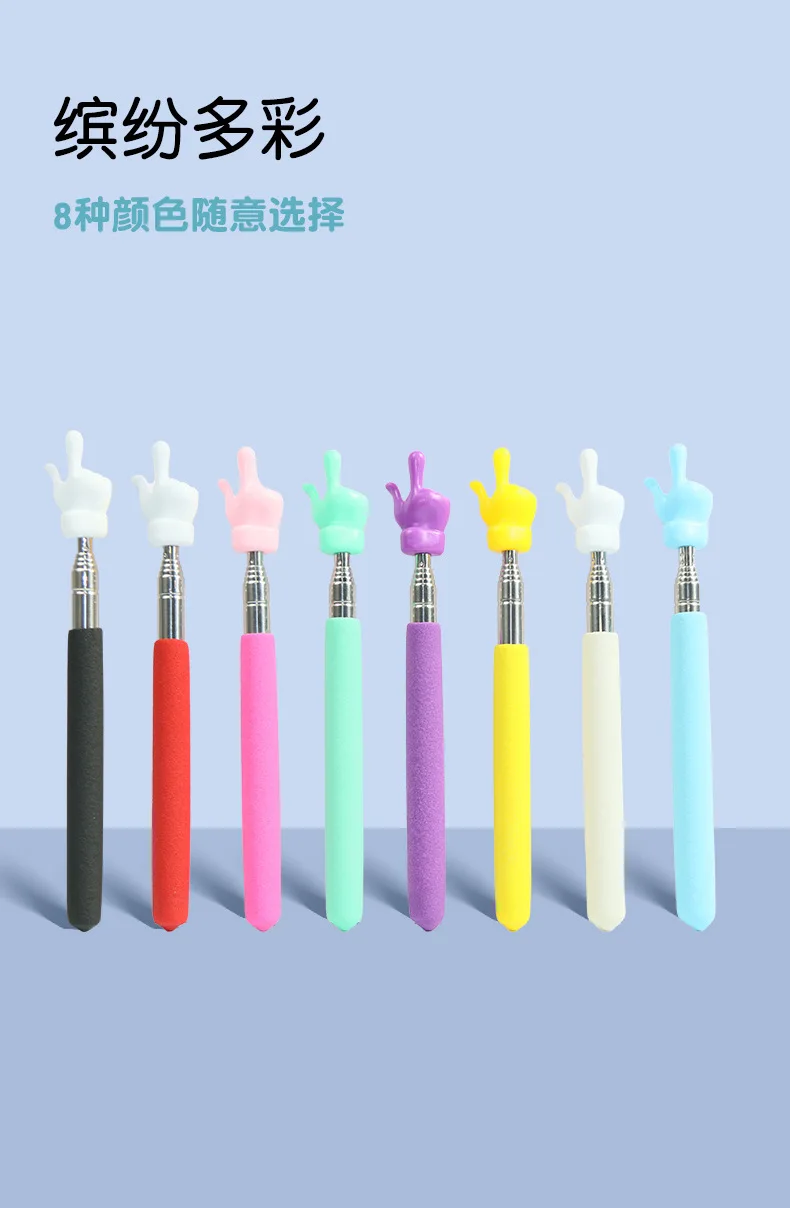Puntero de enseñanza de acero inoxidable, varilla telescópica, diseño de dedo, pizarra blanca, palo de enseñanza, suministros escolares y de oficina