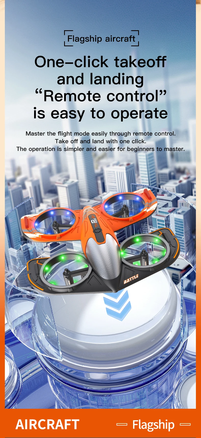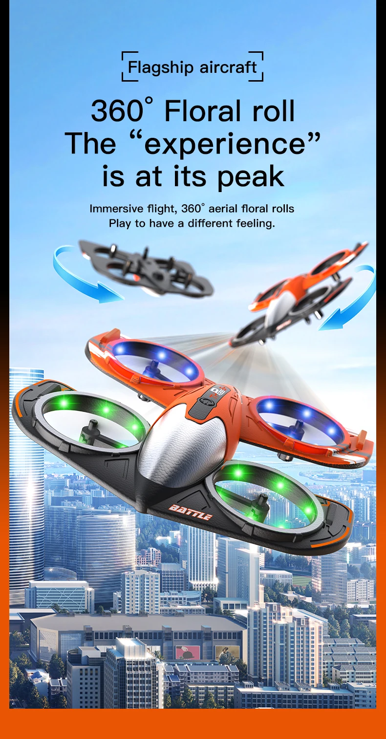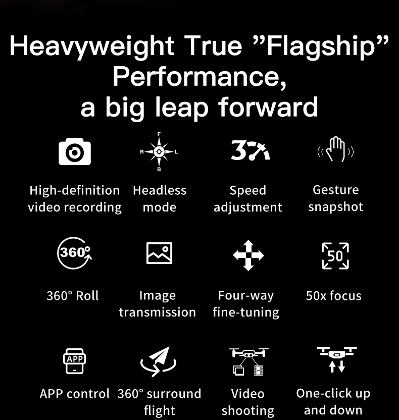 Despegue/aterrizaje/retorno/rollo con 1 clic: modo sin cabeza de brújula en rollo con 1 clic, admite control WiFi del teléfono móvil, transmisión en tiempo real en la pantalla del teléfono móvil, modo de altitud fija, vuelo/avión estable, función de temporizador automático.