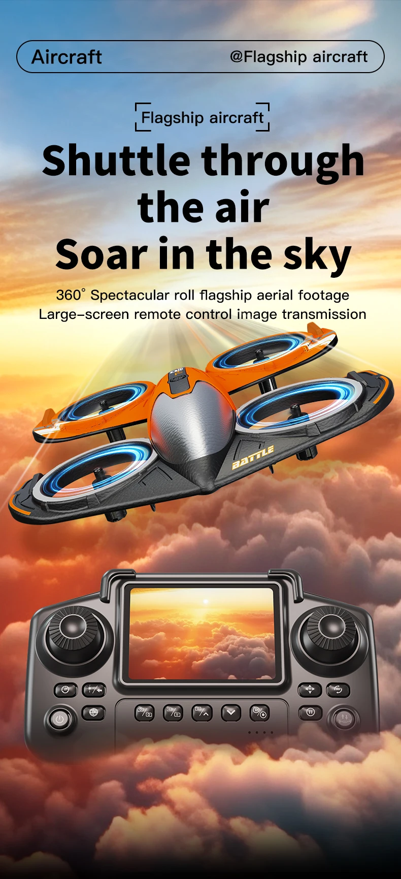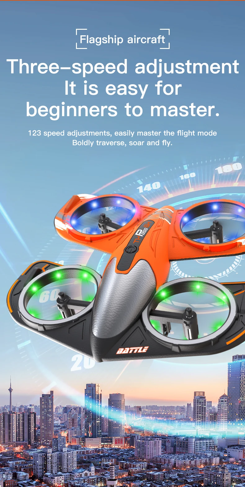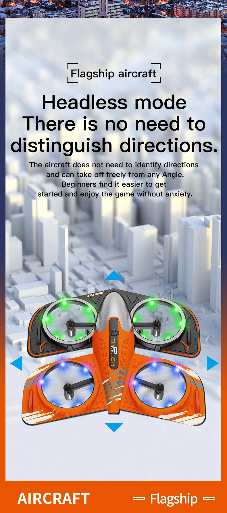 Despegue/aterrizaje/retorno/rollo con 1 clic: modo sin cabeza de brújula en rollo con 1 clic, admite control WiFi del teléfono móvil, transmisión en tiempo real en la pantalla del teléfono móvil, modo de altitud fija, vuelo/avión estable, función de temporizador automático.