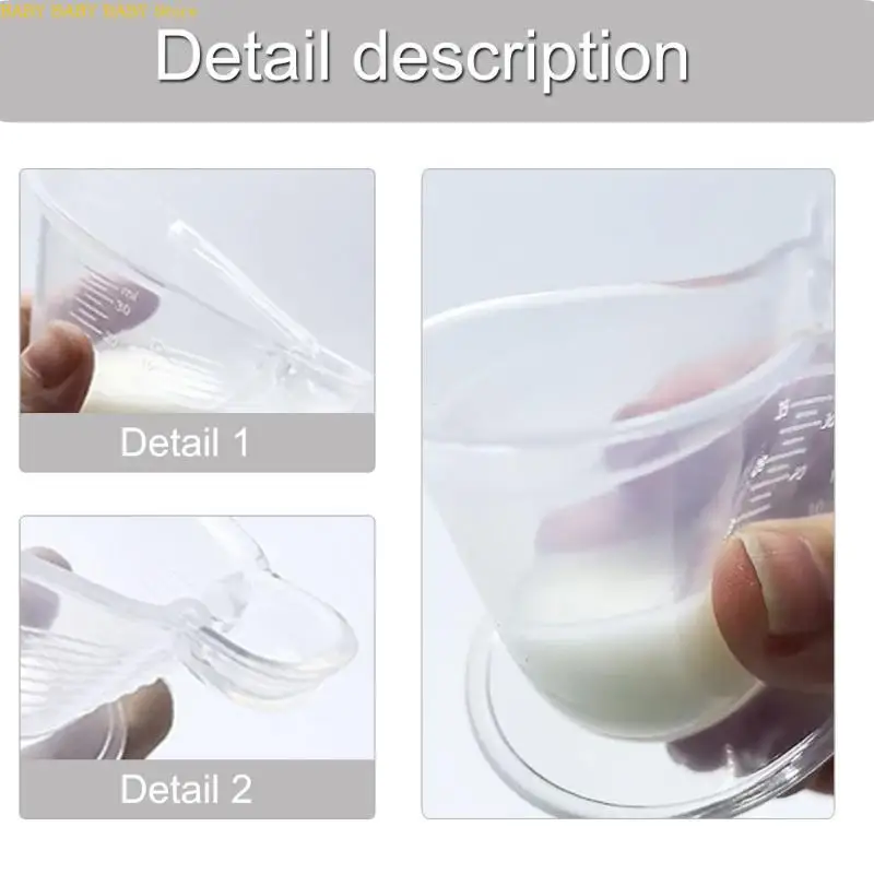 Con una capacidad de 35 ml diseñada para adaptarse al tamaño del estómago de los recién nacidos, esta taza de alimentación presenta marcas de medición claras para un control preciso de la alimentación.
