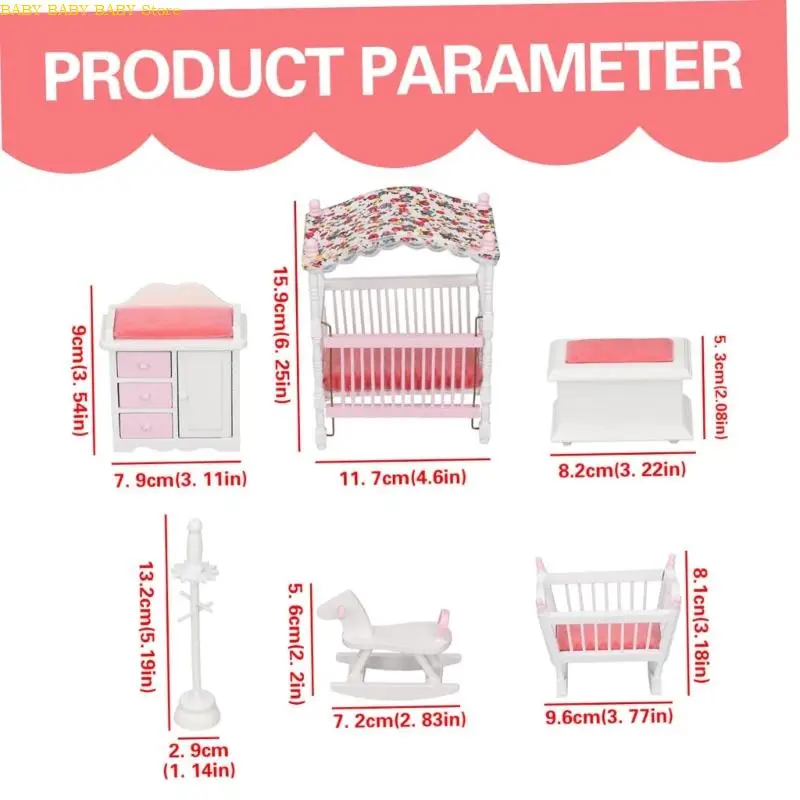 El paquete incluye:1 juego de mini cuna para casas de muñecas (6 piezas)