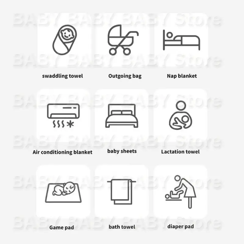 Adecuado para cochecitos y camas de bebé, se puede usar como manta, paño envolvente, toalla de baño, funda para cochecitos, manta para aire acondicionado, asegurando calidez y seguridad.