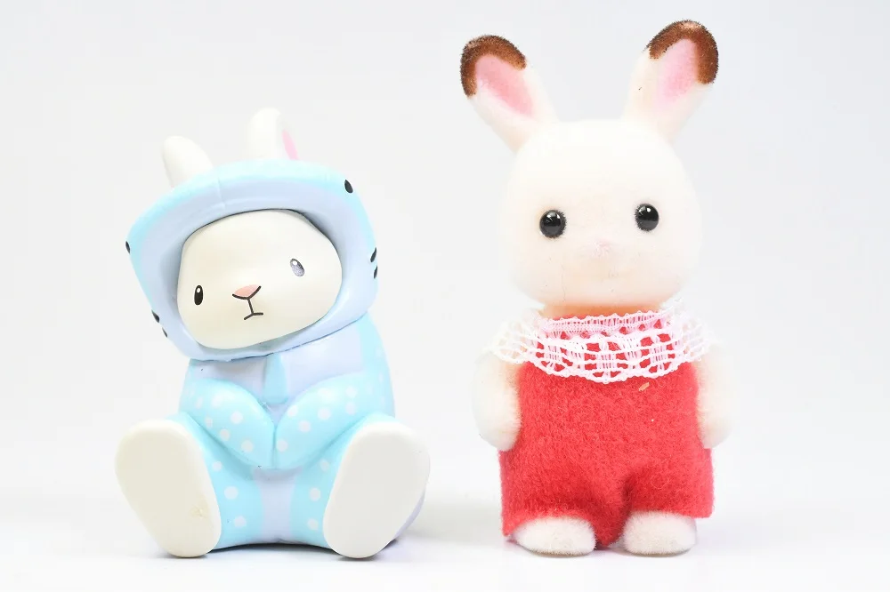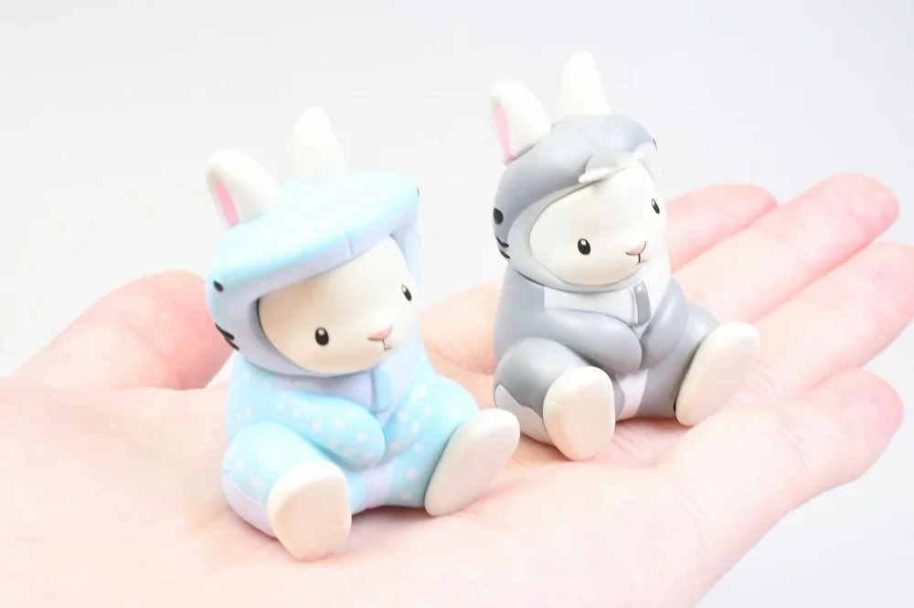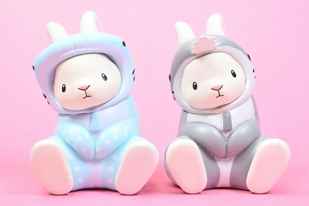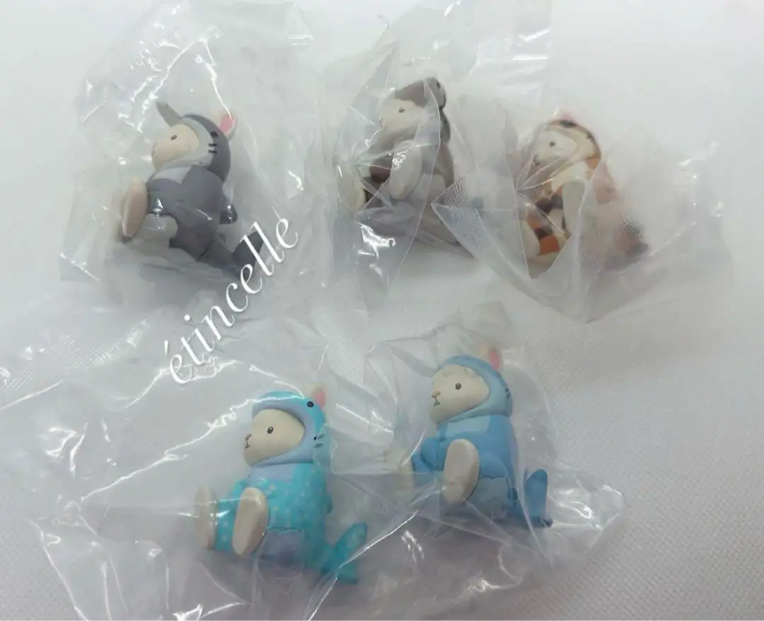 Comprar Qualia-juguetes de cápsula kawaii, figura de Mascota de Estados Unidos, conejo, pijama de pingüino y tiburón sentado, cambio de ropa, gashapon