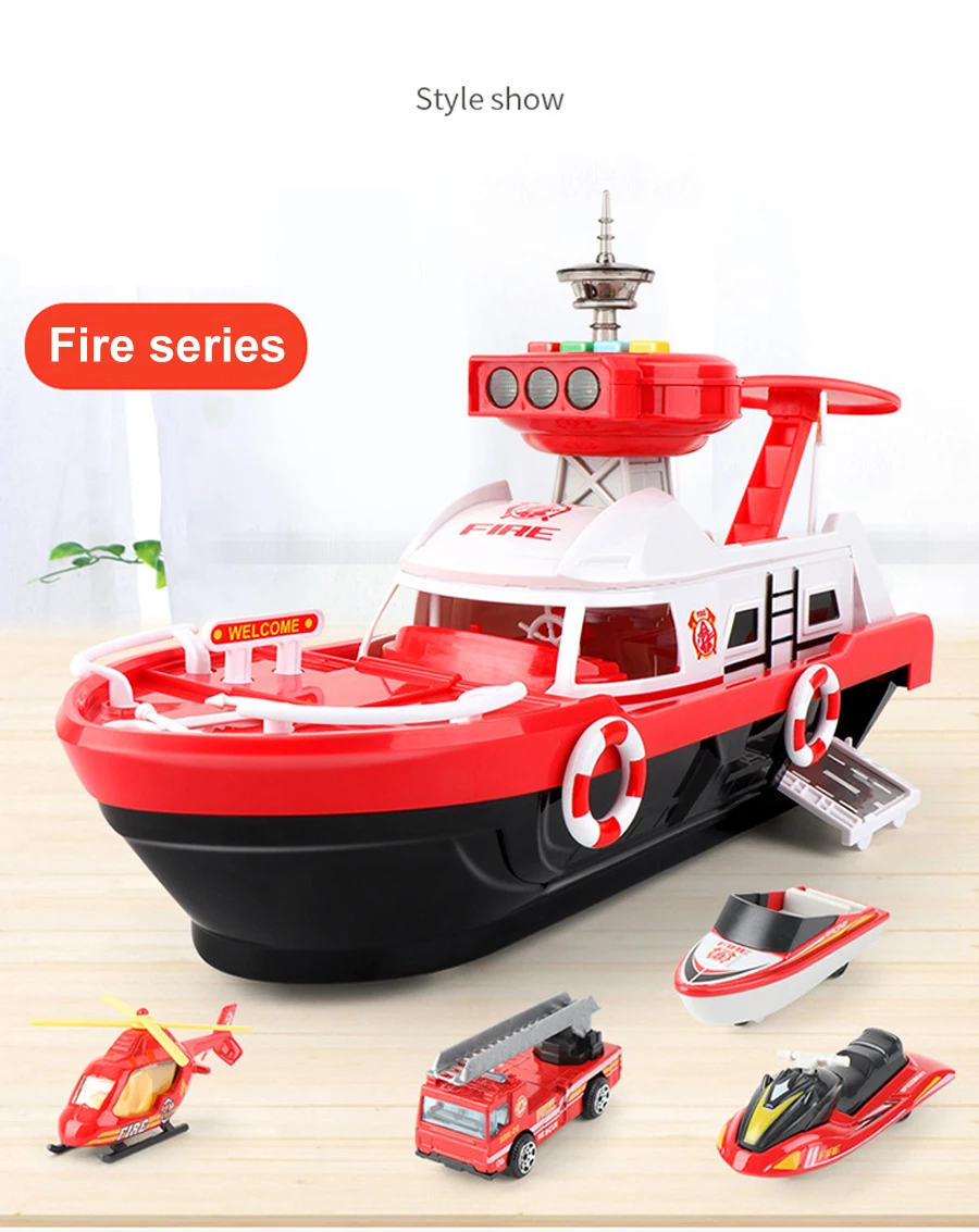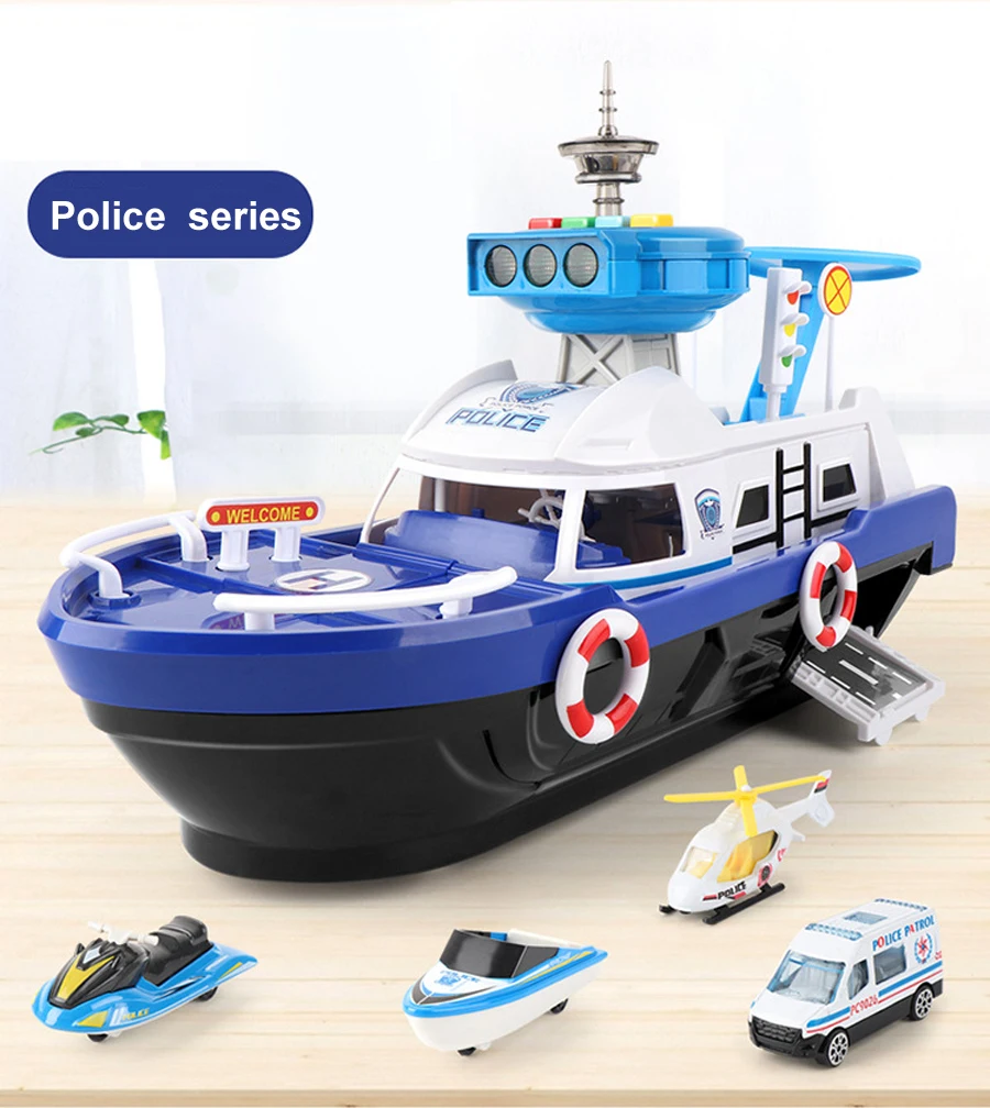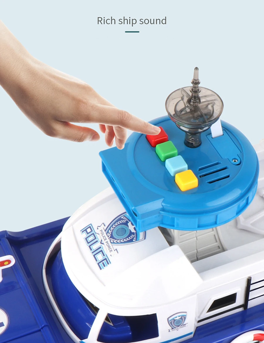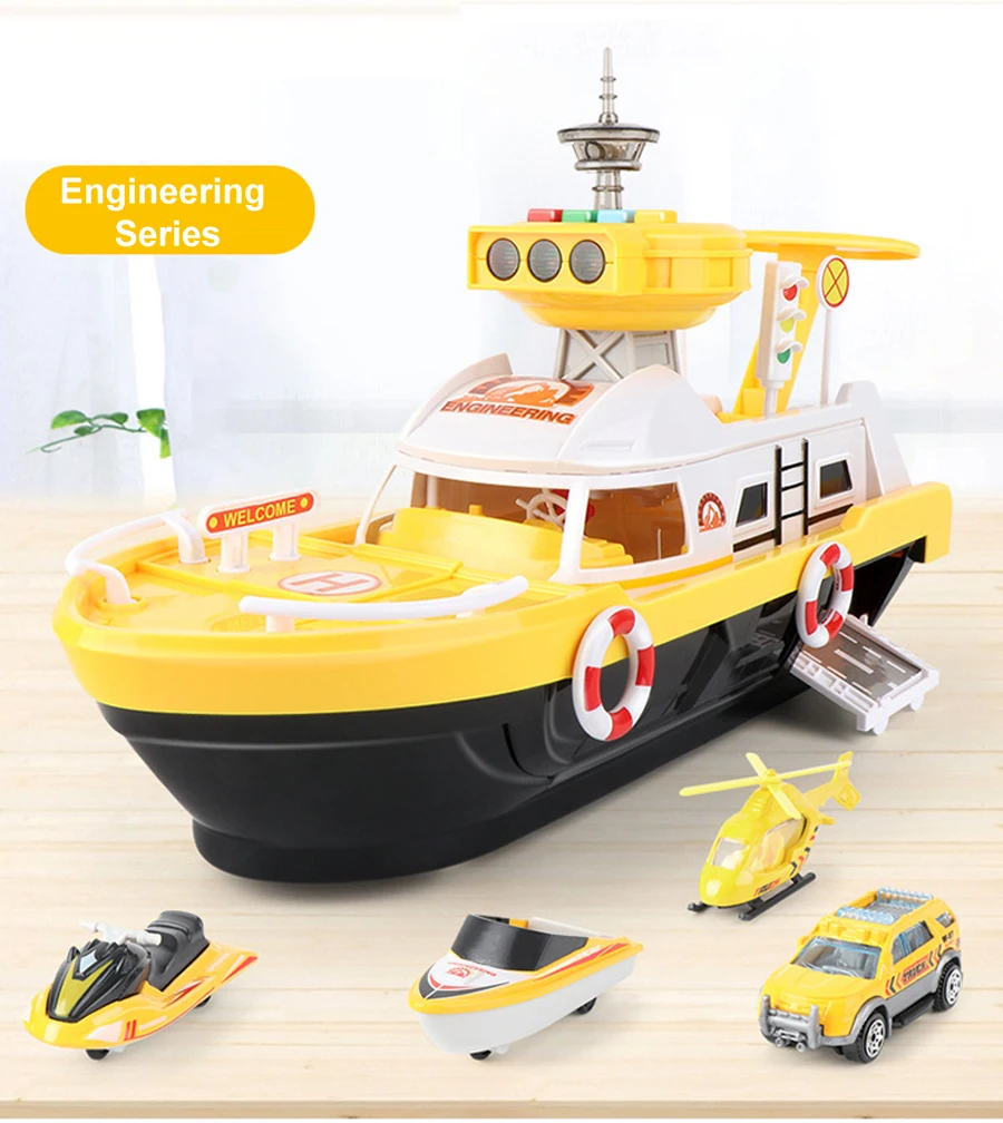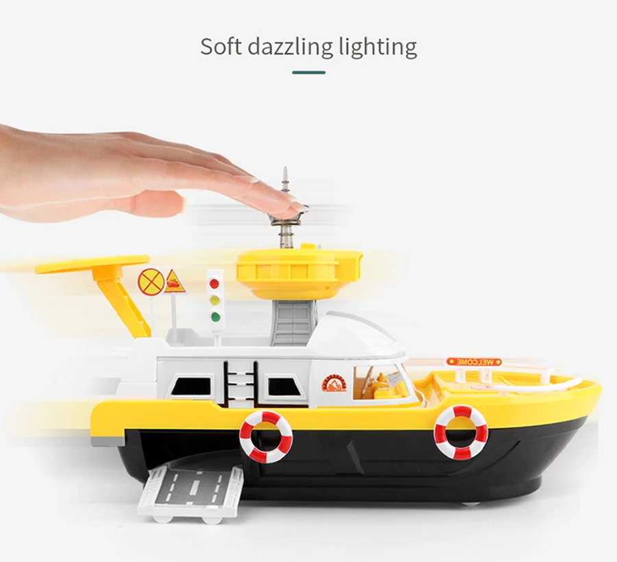 La puerta del barco se puede abrir y cargar con múltiples juguetes de coche.