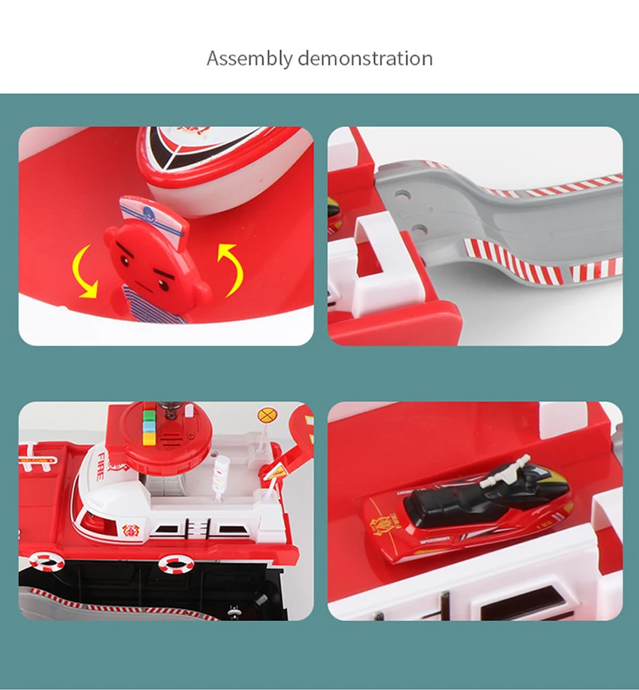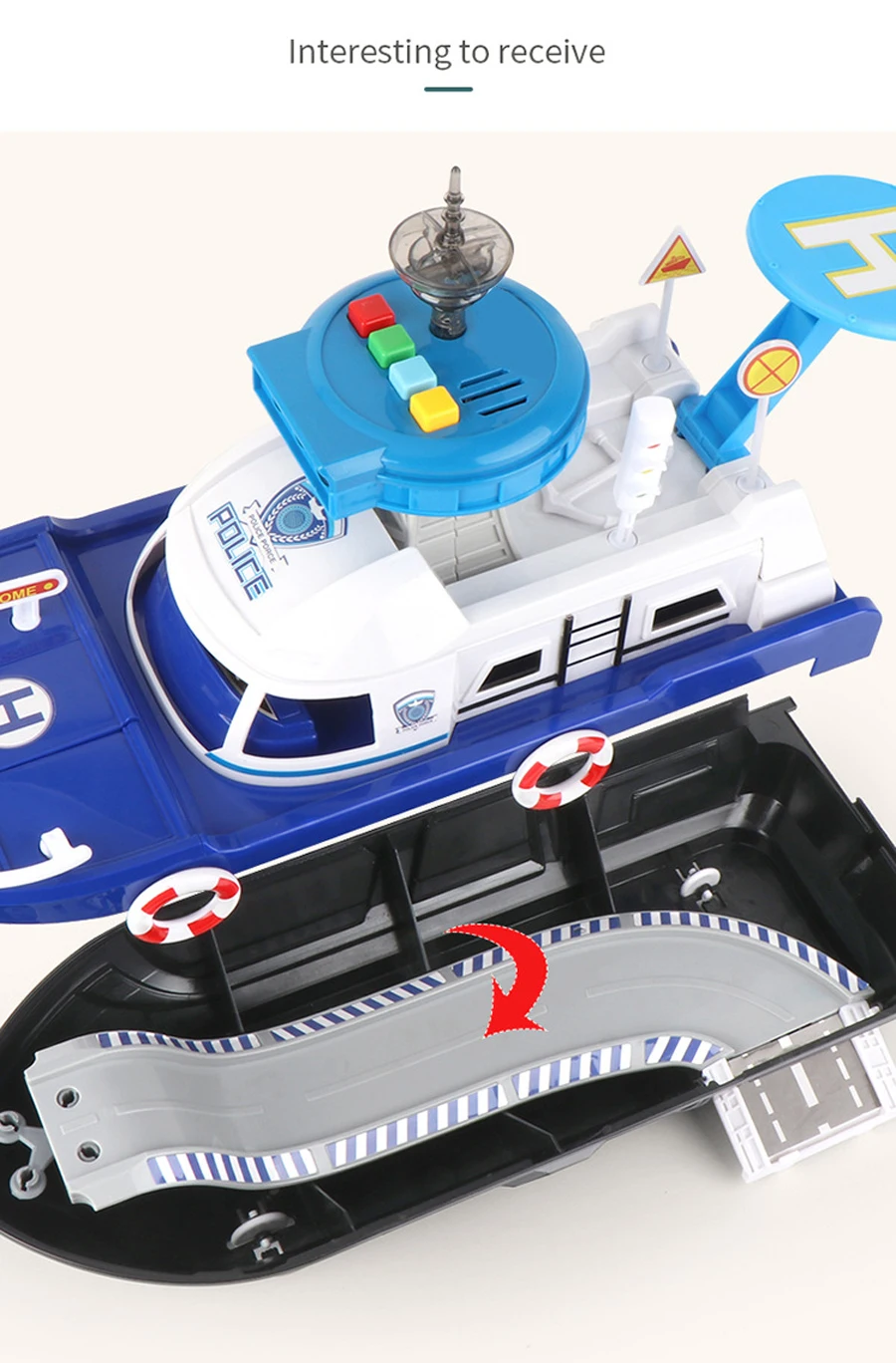 La cabina del barco se puede utilizar como un tobogán para hacer que el coche de juguete se deslice.