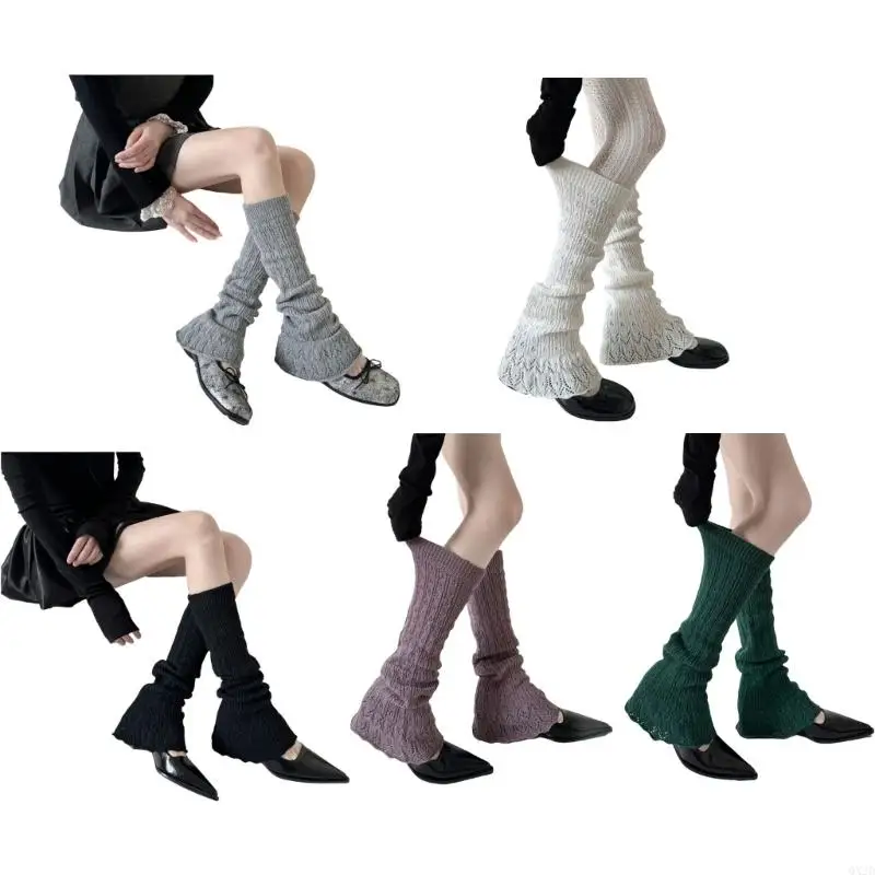 Características:OOTDTYCalentador de piernas de punto de moda, manga de calcetines de primavera y otoño de los años 90, calcetines hasta la pantorrilla tejidos para niñas, calentador de piernas acanalado de tubo largo.