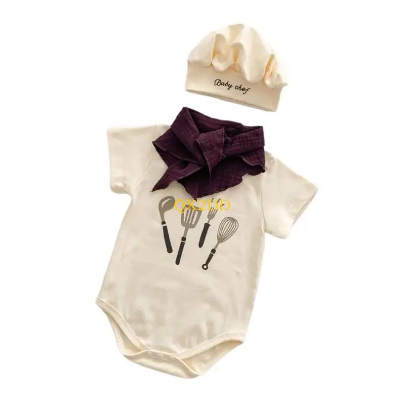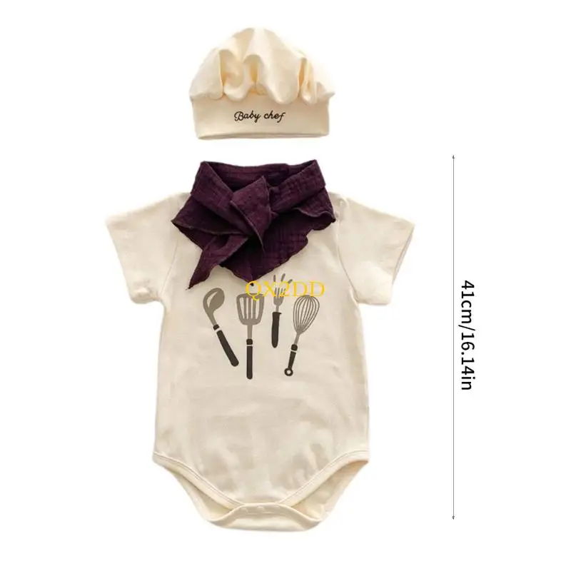 Adorable conjunto de disfraz de chef para bebé de 3 piezas/juego, que incluye gorro, bufanda y body, perfecto para trajes de fotografía de recién nacidos y para crear momentos.