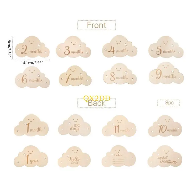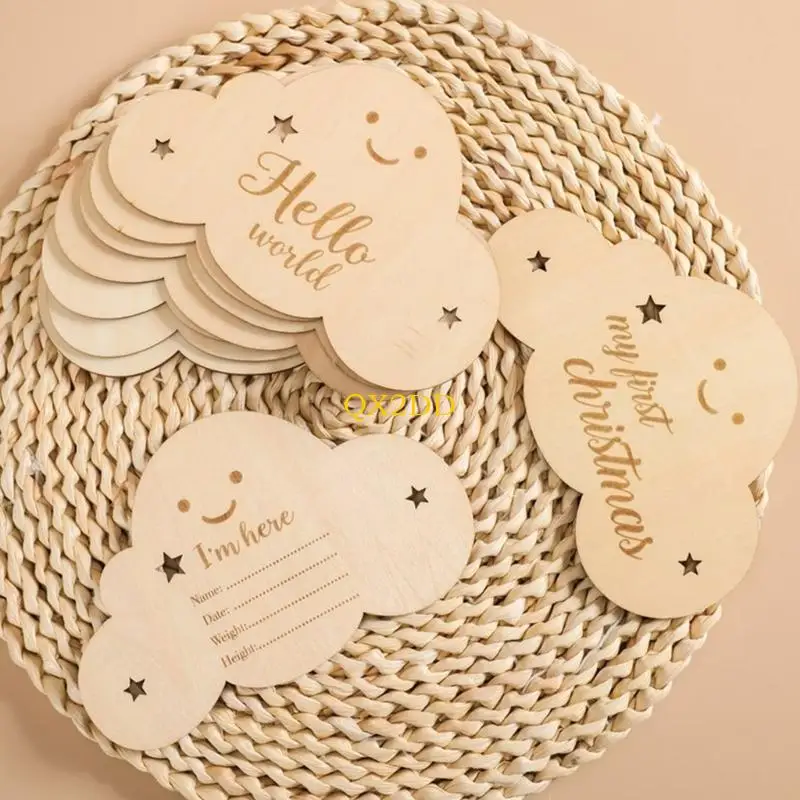 Gran grabado y tamaño perfecto: el tamaño de la tabla de madera mide 14,1x9 cm/5,55x3,54 pulgadas, 8 piezas con diseño grabado de doble cara, una nube encantadora única simboliza la llegada, tarjetas fotográficas de hitos.