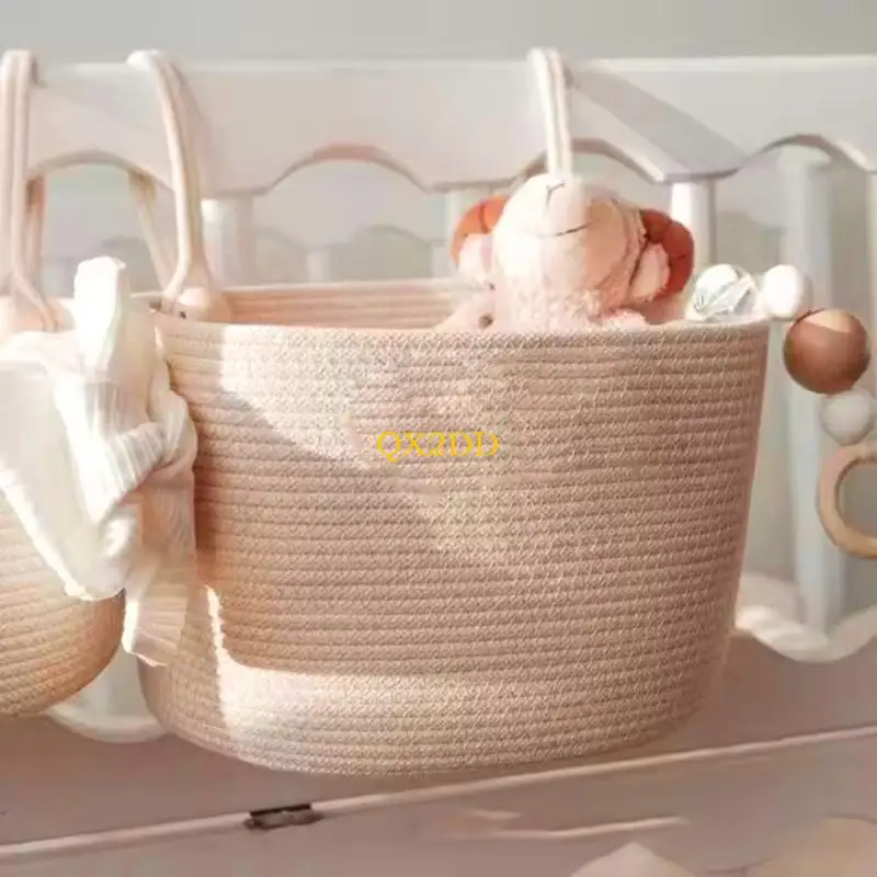 Solución de almacenamiento portátil: ya sea en la guardería o de viaje, se puede usar una canasta colgante para guardar bolsas de pañales y bolsas para la noche, proporcionando el espacio de almacenamiento necesario dondequiera que esté el bebé.