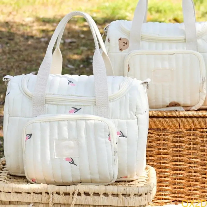 Características:OOTDTYLa bolsa de almacenamiento de pañales para bebés bordada se puede usar como bolso, bolso cruzado, bolso de hombro, moderno y práctico, para satisfacer sus necesidades genitoriales.