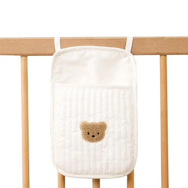 Mantenga los artículos del bebé organizados y fácilmente accesibles con esta bolsa de almacenamiento para cunas.Está confeccionado con tela de algodón, lo que garantiza durabilidad y facilidad de limpieza.