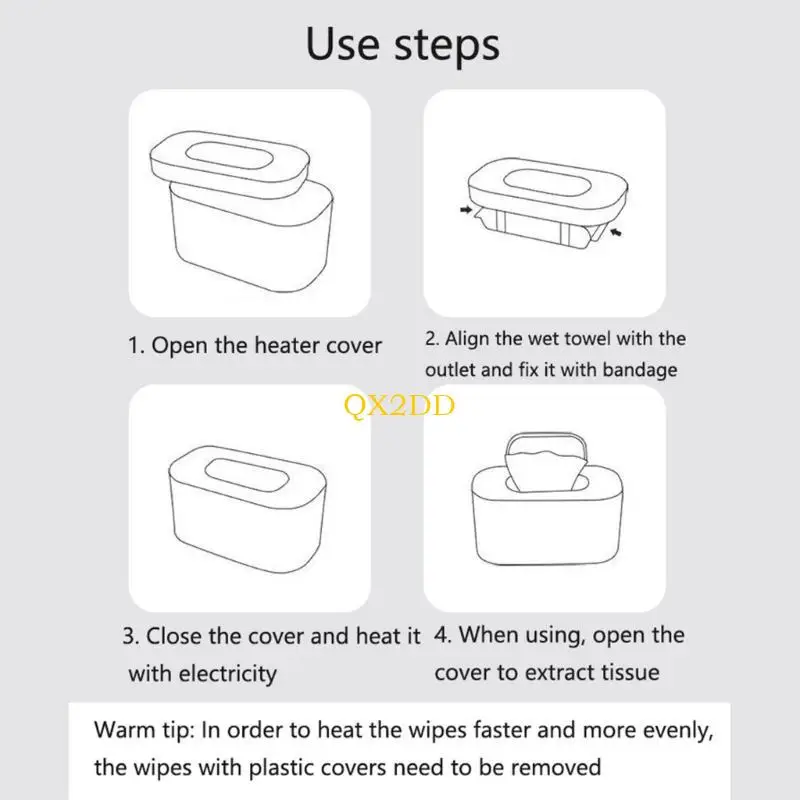 Para que las toallitas húmedas se calienten más rápido y de manera más uniforme, retire la tapa de las toallitas húmedas con tapa de plástico.