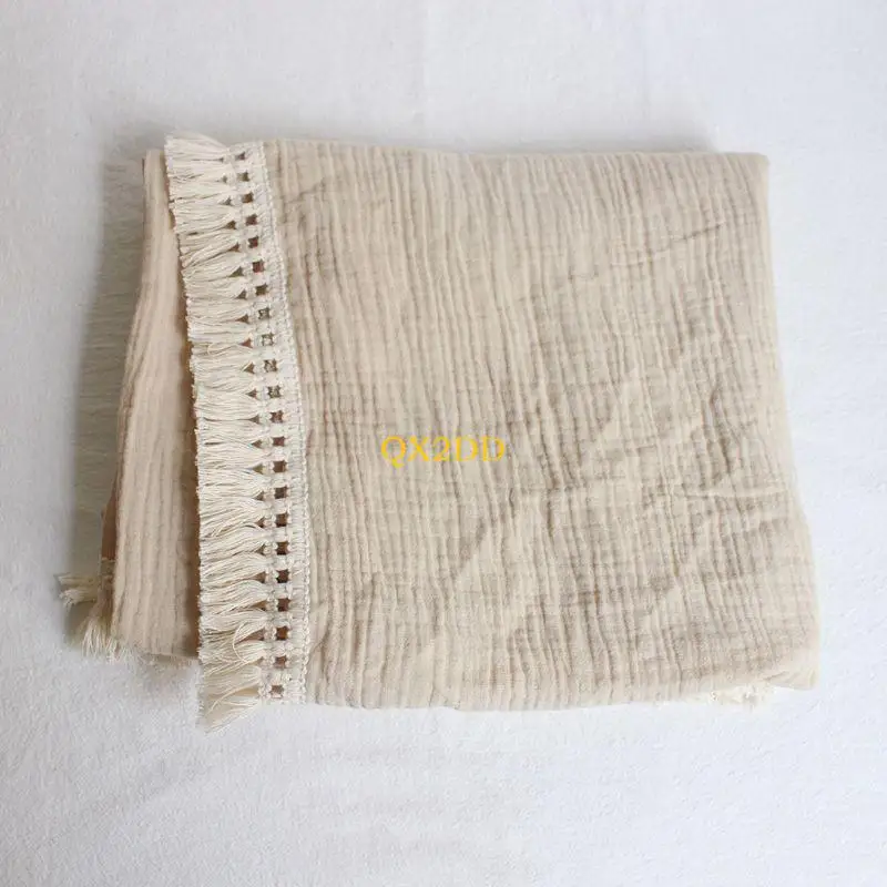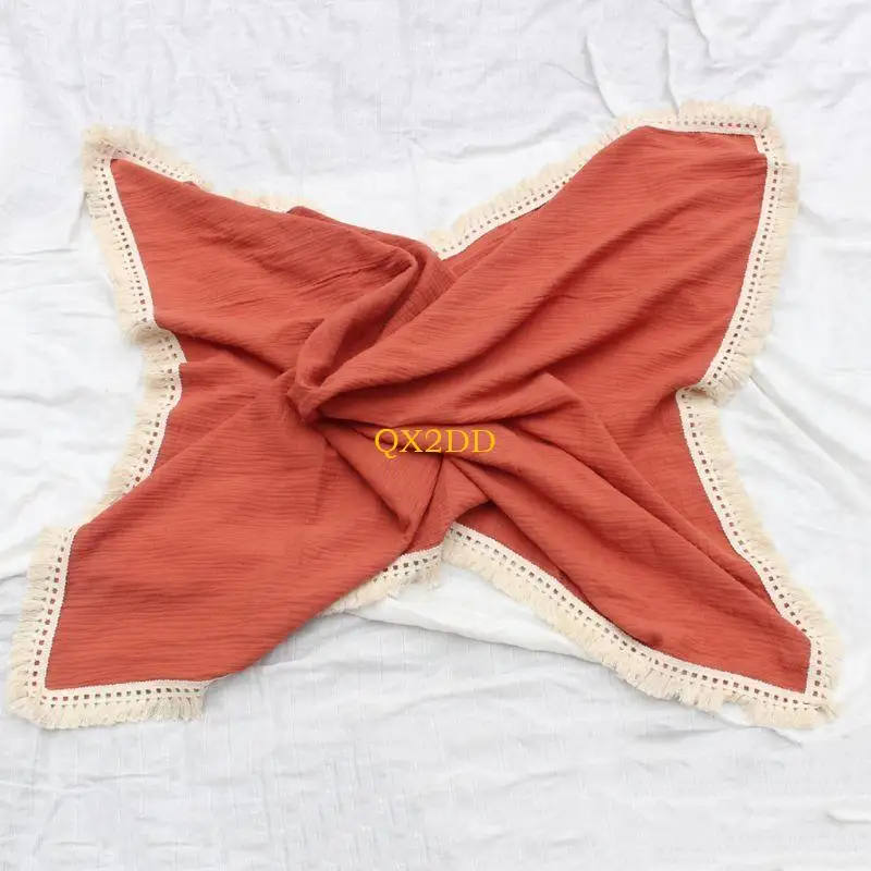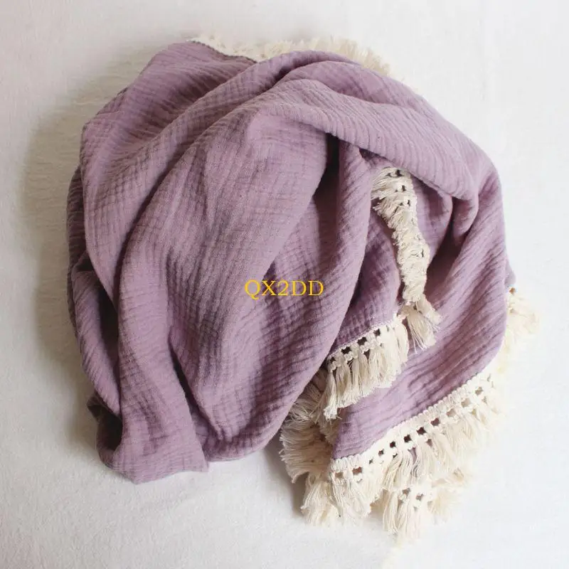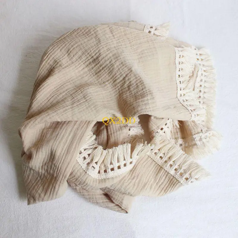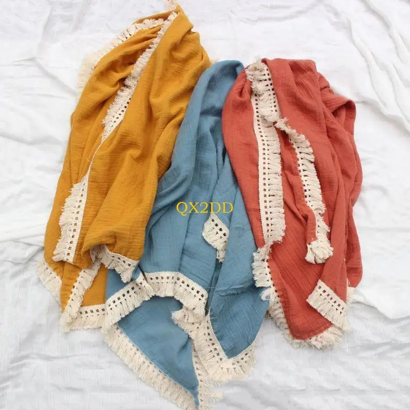 Manta para bebé infantil con borlas de muselina unisex para recién nacido, manta receptora