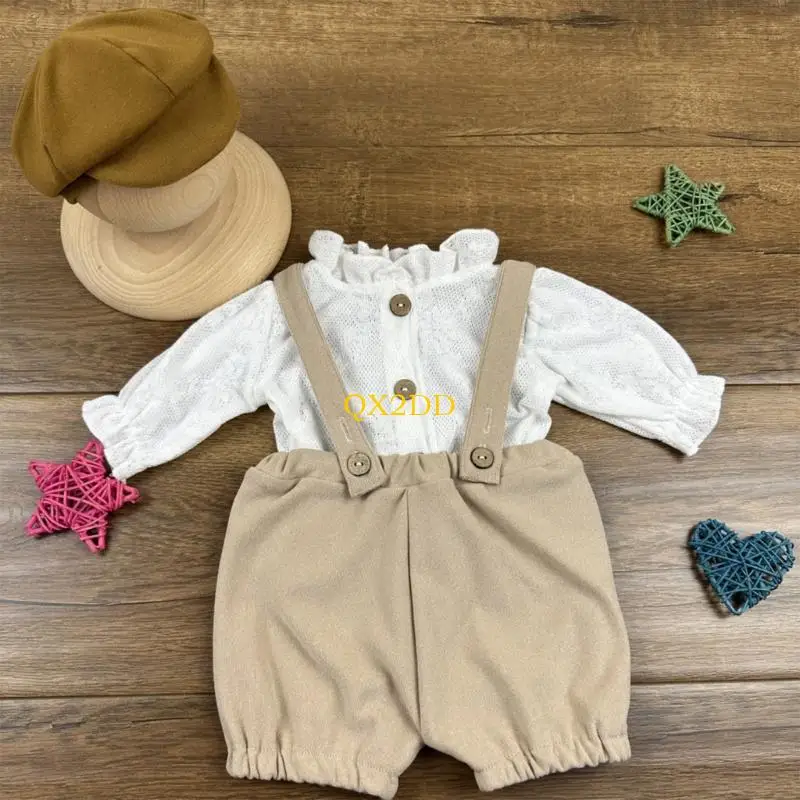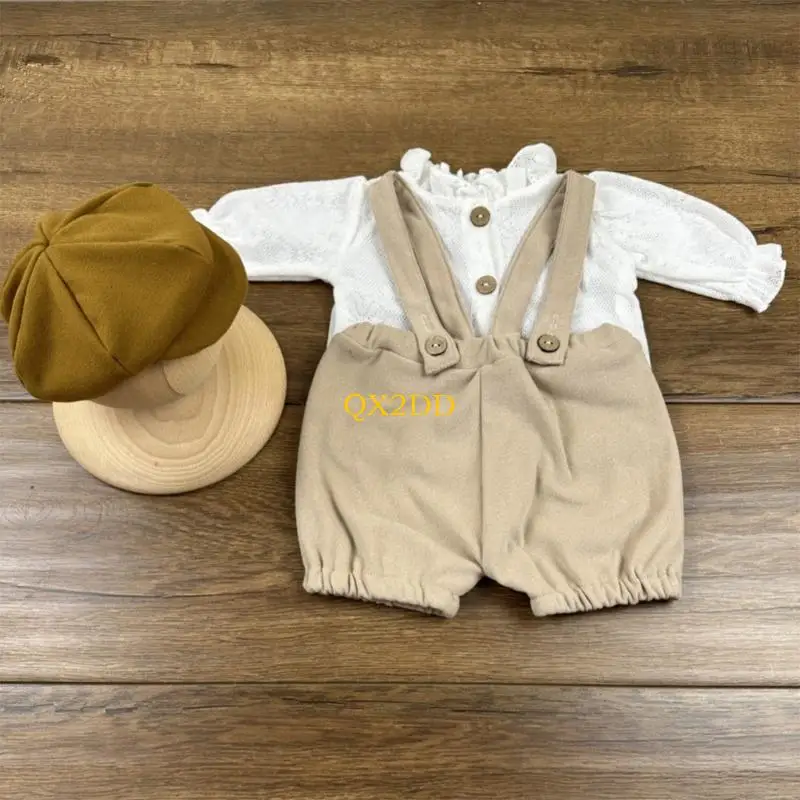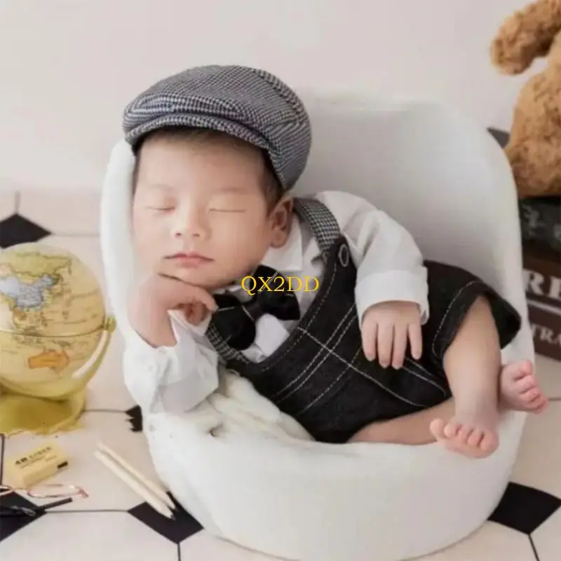 Características:OOTDTYCapturando el momento con nuestro suave conjunto de ropa de fotografía para recién nacidos, que incluye un sombrero, una camisa elegante y pantalones con tirantes diseñados para una comodidad suave durante la fotografía.