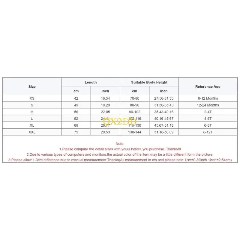 Tamaño XL: Longitud: 68 cm (26,77 pulgadas) Altura del cuerpo adecuada: 116-130 cm (45,67-51,18 pulgadas) Edad de referencia: 6-8 T