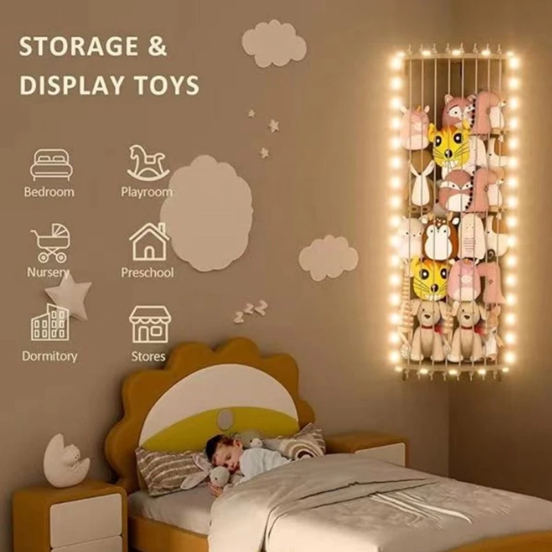 Perfect for children's bedrooms, living room corners, or playrooms, this nursery wall hanging stuffed animal enhances both storage and decorative appeal.