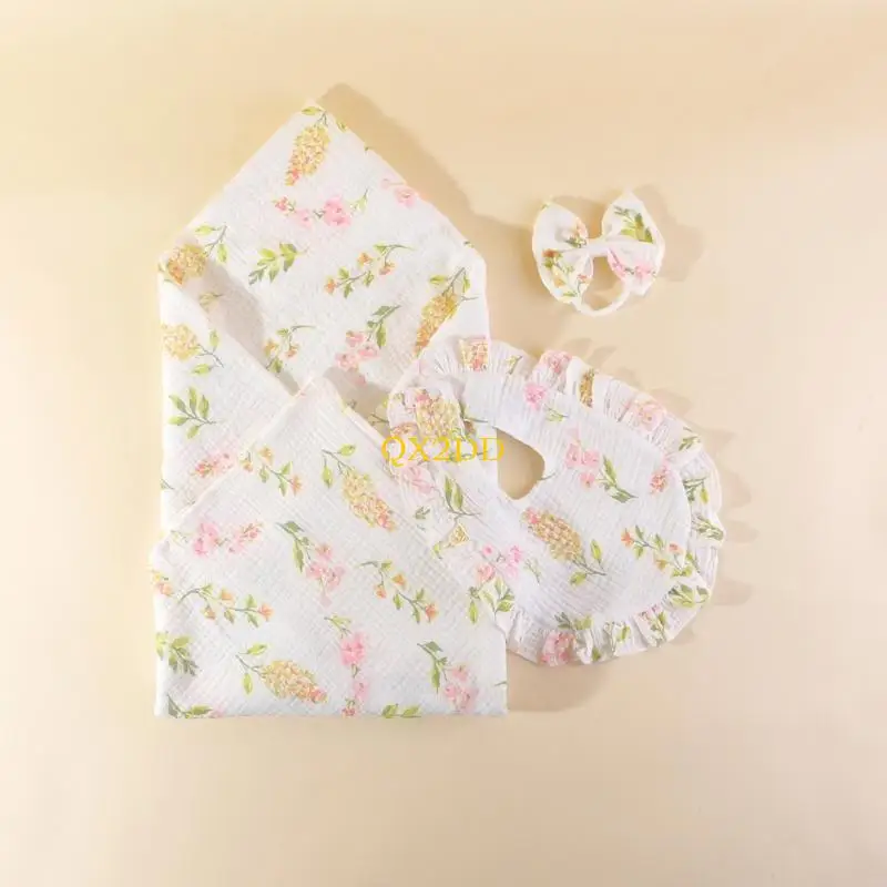 Características:OOTDTYMantenga a su bebé abrigado y cómodo con este encantador juego de 3 piezas de manta, baberos y diademas de algodón estampados.