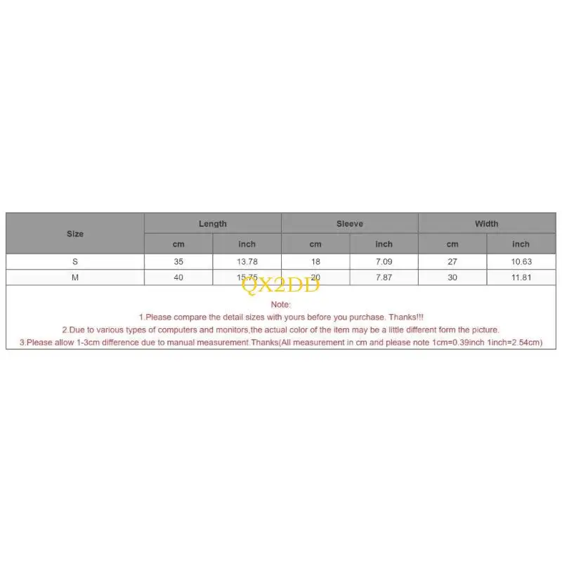 Size:S Length:35cm(13.78inch) Sleeve:18cm(7.09inch) Width:27cm(10.63inch)