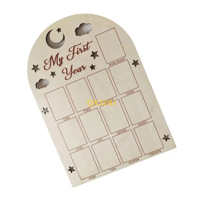 Características:OOTDTYlos hitos de su bebé con el expositor de fotos de madera, diseñado para mostrar 12 fotos mensuales desde su primer año, creando un hermoso para los nuevos padres.