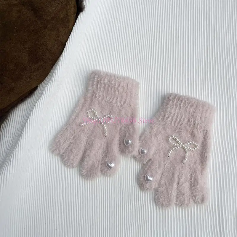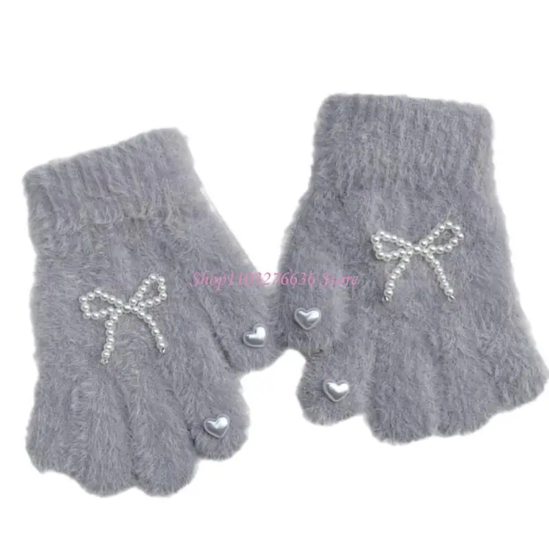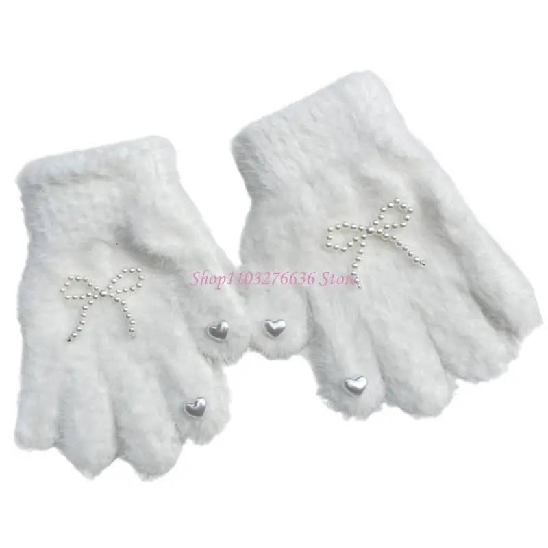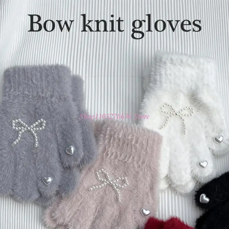 Características:OOTDTYLos guantes tejidos presentan exquisitos adornos de perlas y diseño de lazos, que muestran elegancia y dulzura.