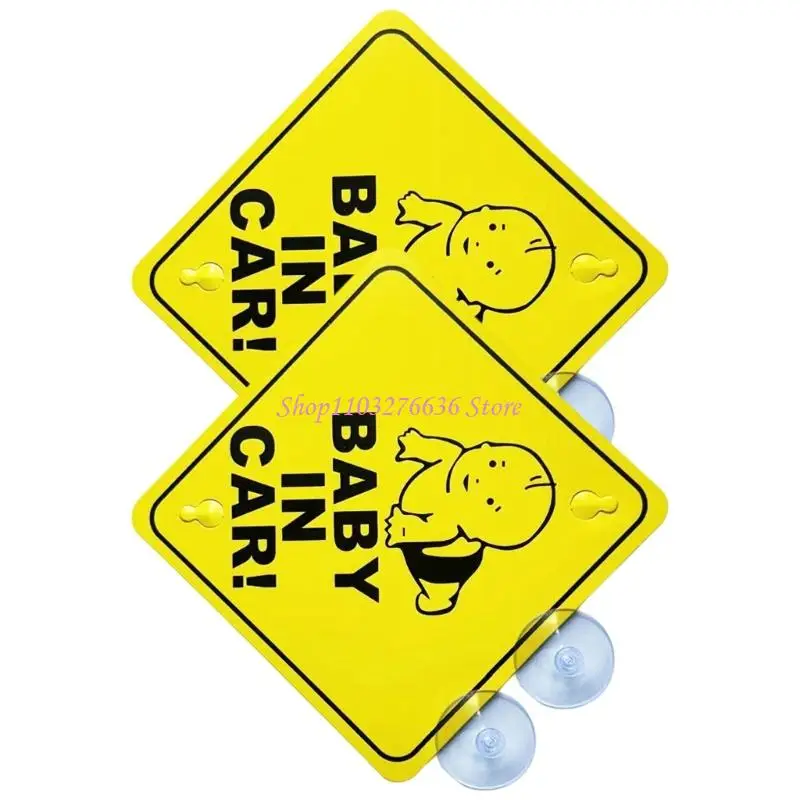 El paquete incluye:2 pegatinas de advertencia para bebé con doble ventosa para coche.
