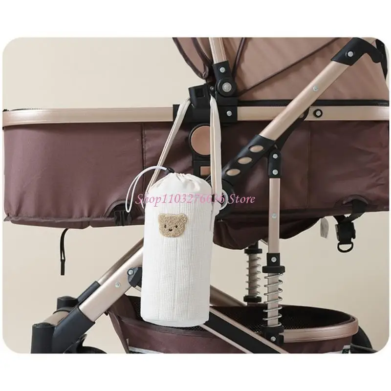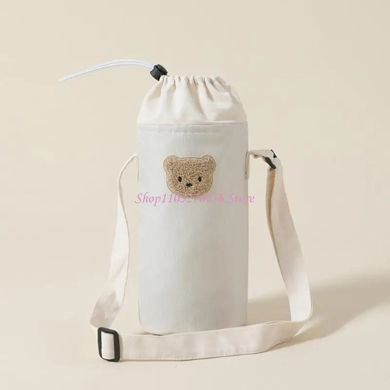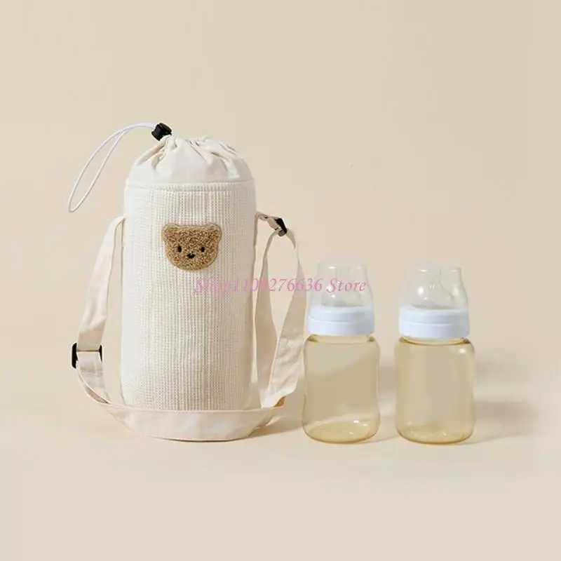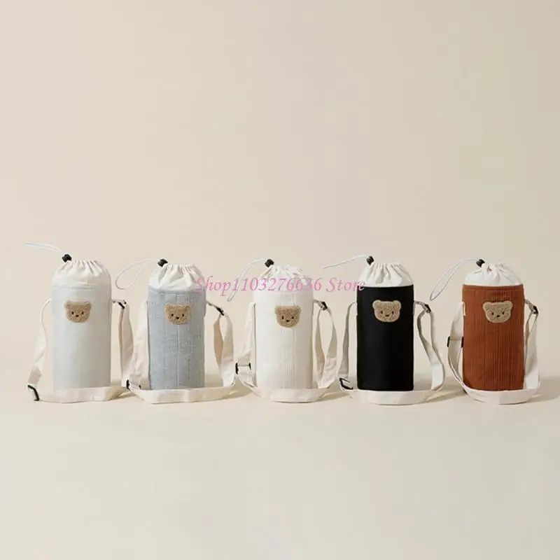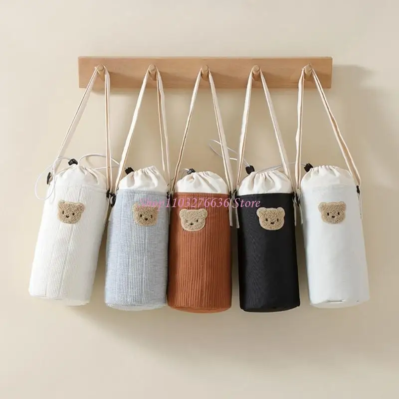 Características:OOTDTYBolsa para botellas de algodón, bolsa para vasos de agua, estuche para botellas de mano de gran capacidad, bolso de hombro portátil para mamá, funda protectora para botellas.