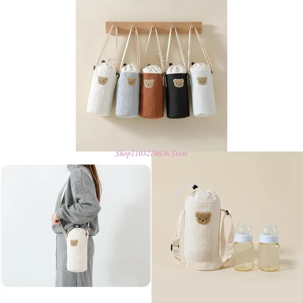 Características:OOTDTYBolsa para botellas de algodón, bolsa para vasos de agua, estuche para botellas de mano de gran capacidad, bolso de hombro portátil para mamá, funda protectora para botellas.