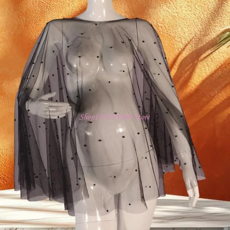 Características:OOTDTYDiseño elegante: la capa para sesiones de fotos de maternidad es de tela de malla, ligera y transpirable.Está decorado con exquisitas cuentas y perlas, que muestran temperamento.