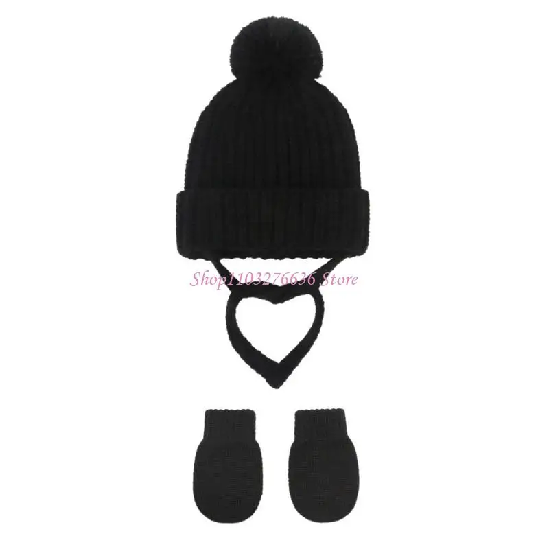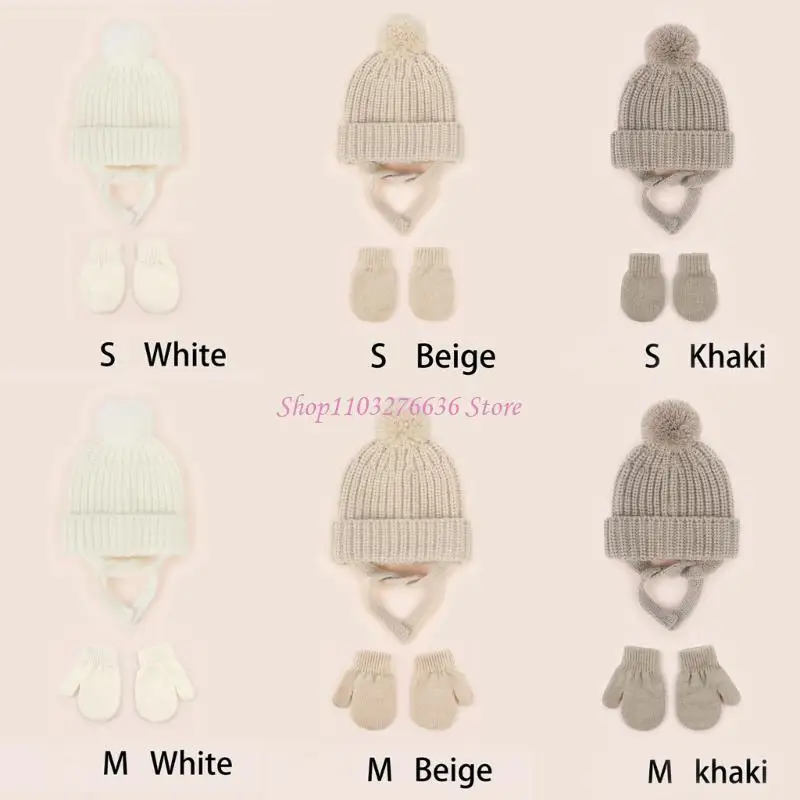 Características:OOTDTYPrecioso gorro de punto con pompones para bebé, correa para la barbilla atada, con guantes a juego, adecuado tanto para niños como para niñas.