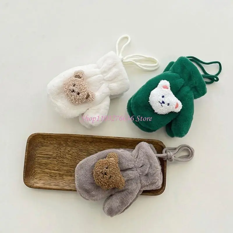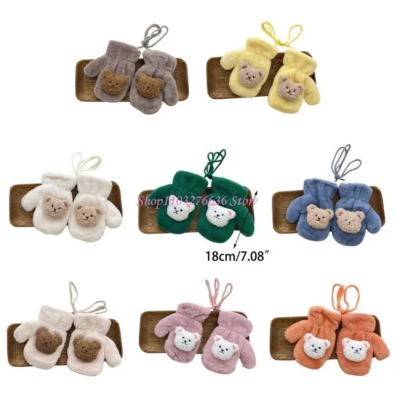 Guantes acogedores de otoño e invierno para niños: los guantes para niños con un encantador diseño de oso de dibujos animados, material grueso acogedor y cálido de buena calidad, perfectos para el uso diario de invierno y otoño de los niños pequeños, garantizan que las manos de sus bebés estén cómodas y secas en el frío invierno.