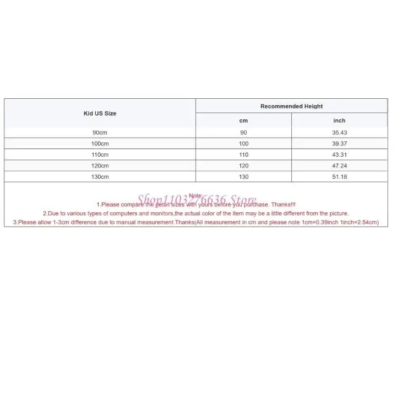 Tamaño infantil de EE. UU.: 110 cm Altura recomendada: 110 cm (43,31 pulgadas)