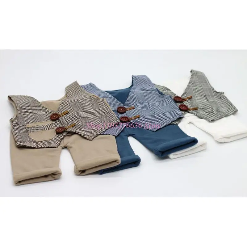 R6FD recién nacido Propiedades Props Little Gentleman Plaid Vest Shorts traje 3 colores - imagen 2