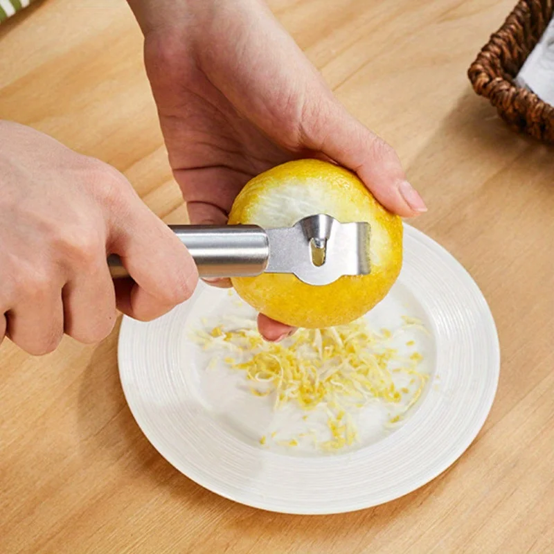 Rallador de queso de acero inoxidable, rallador y pelador de cocina, pelador de limón con cepillo de limpieza, adecuado para verduras y frutas, 2 uds.