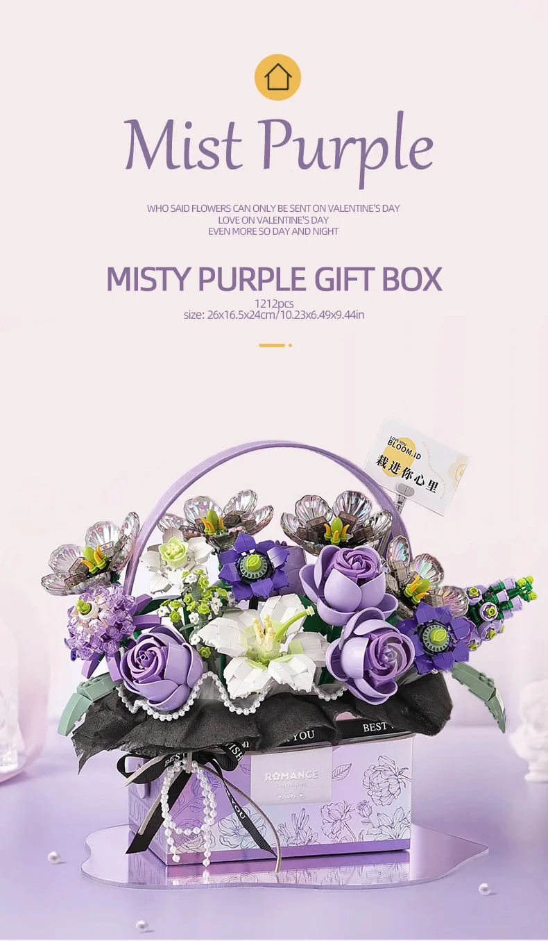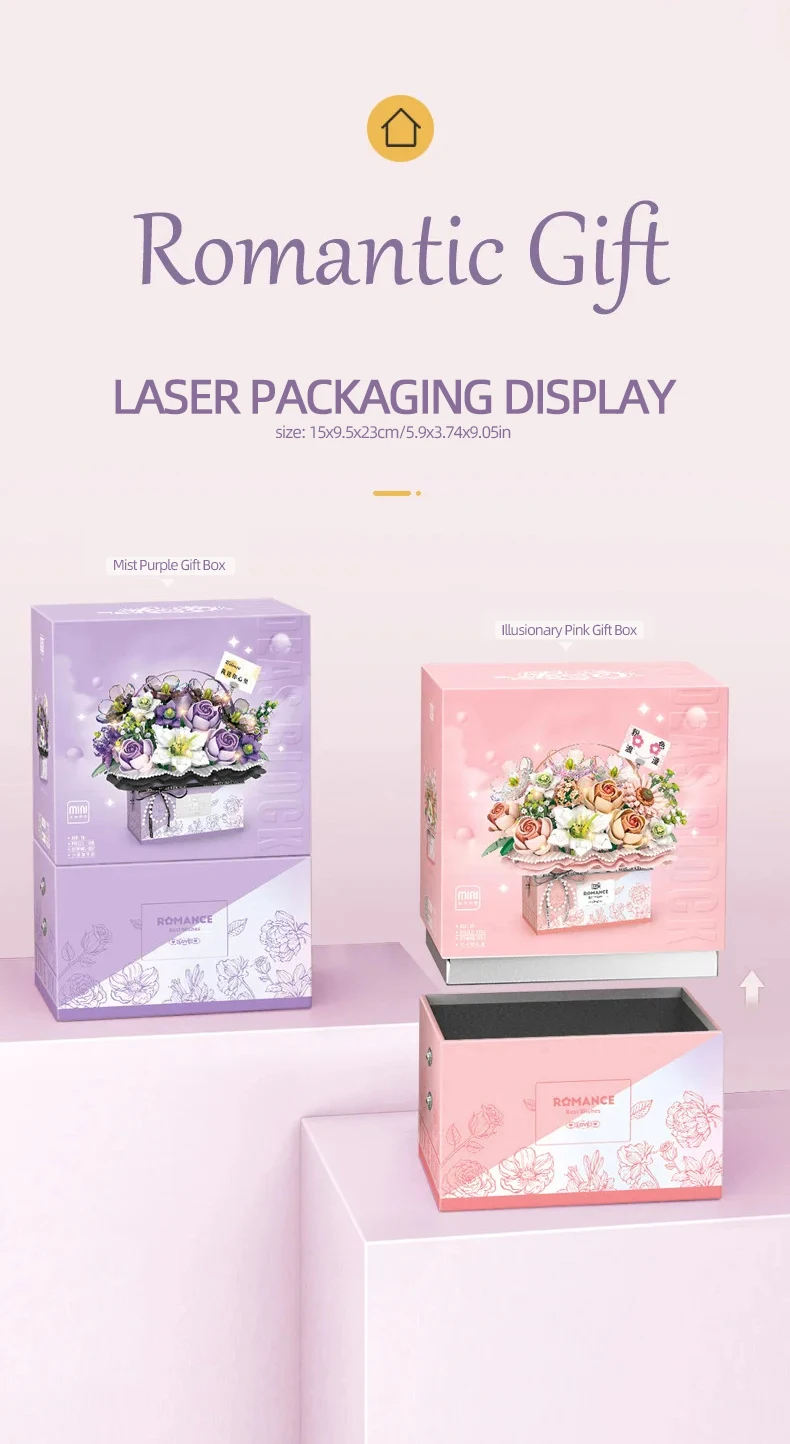2.Serie de cajas de regalo portátiles con ramo de flores: este juego viene en una caja de regalo portátil, lo que facilita su almacenamiento y transporte.Los niños pueden llevar su juego creativo a donde quiera que vayan, ya sea en la casa de un amigo, en un viaje familiar o incluso al colegio.El tamaño compacto de la caja de regalo garantiza la comodidad sin comprometer la diversión.
