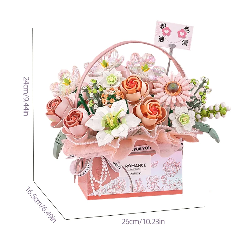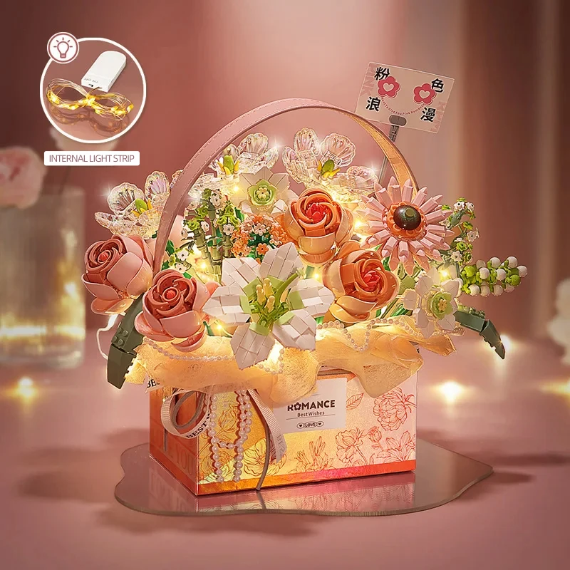 1.Bloques de construcción creativos de ramo de cesta de rosas rosas: este exclusivo juego de bloques de construcción presenta un diseño creativo inspirado en un ramo de canasta de rosas rosas.Con sus colores vibrantes y detalles intrincados, despierta la imaginación y anima a los niños a crear sus propias hermosas arreglos florales.