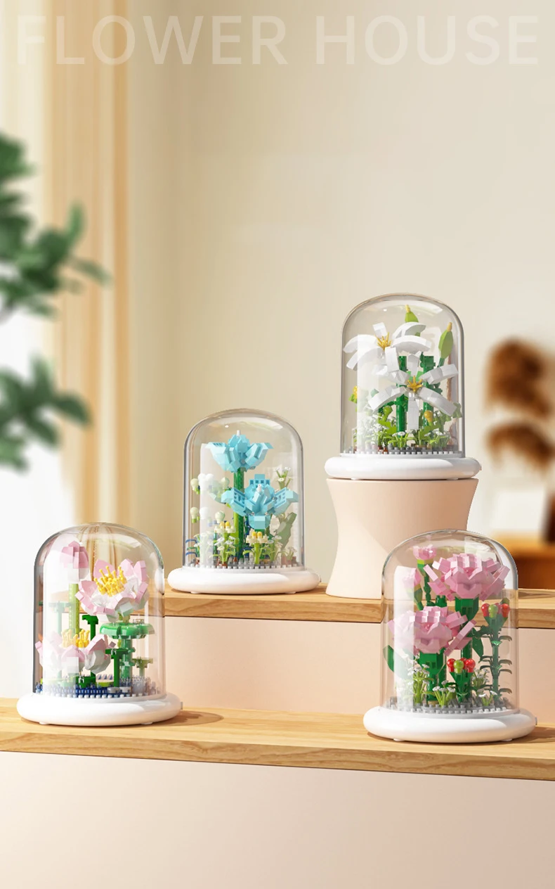 Comprar Ramo de ensamblaje de flores de bloque eterno, decoración de escritorio, bloque de flores, rompecabezas para niños, ramo de juguete de ensamblaje