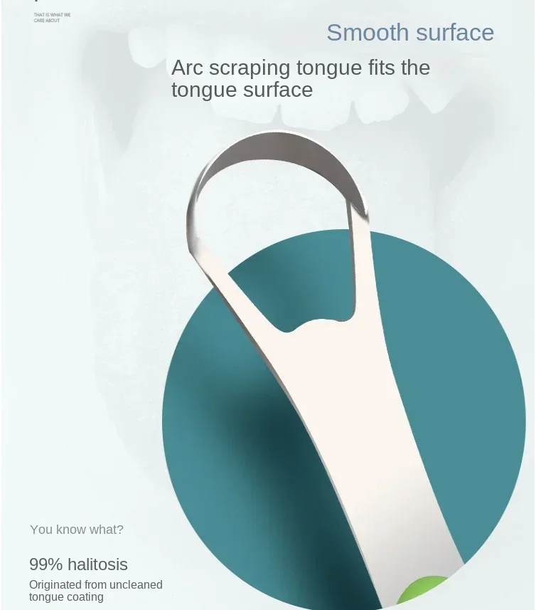 Raspador 1 Uds. Limpiador de lengua útil reutilizable de acero inoxidable limpieza de aliento fresco lengua recubierta herramientas de cuidado de higiene bucal
