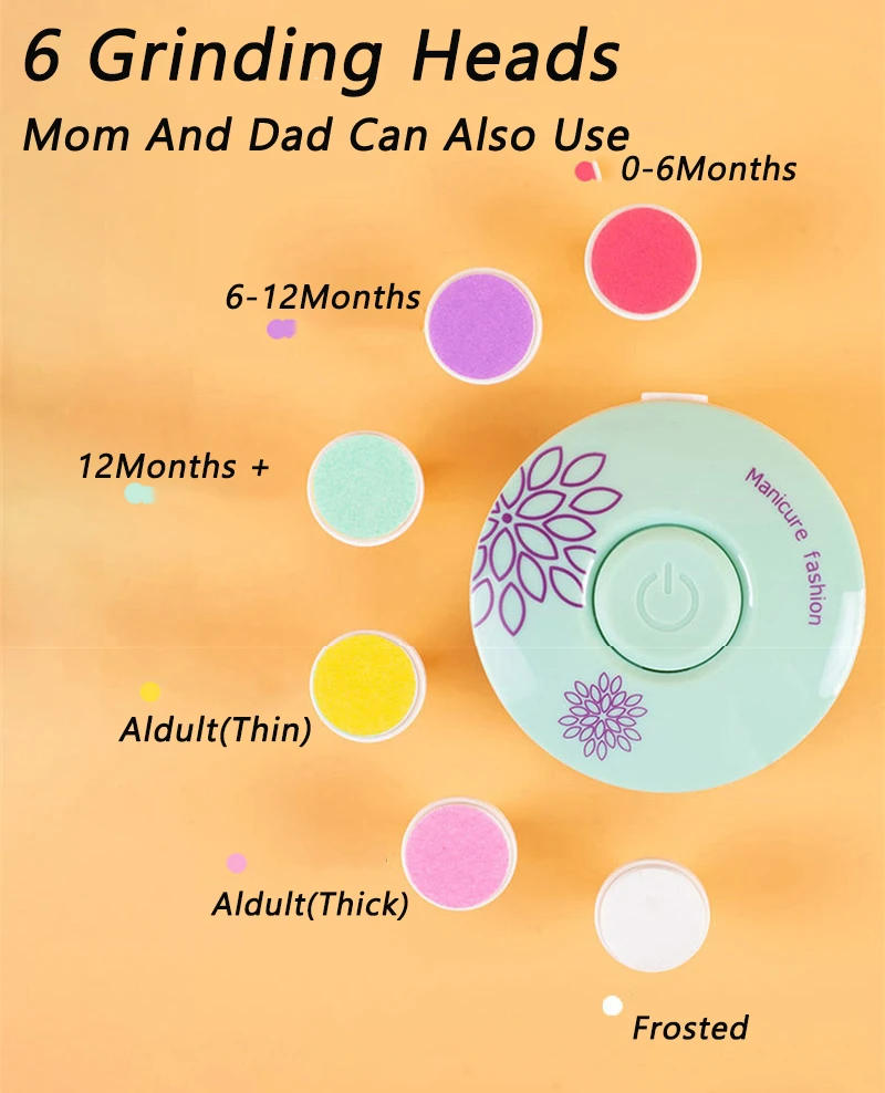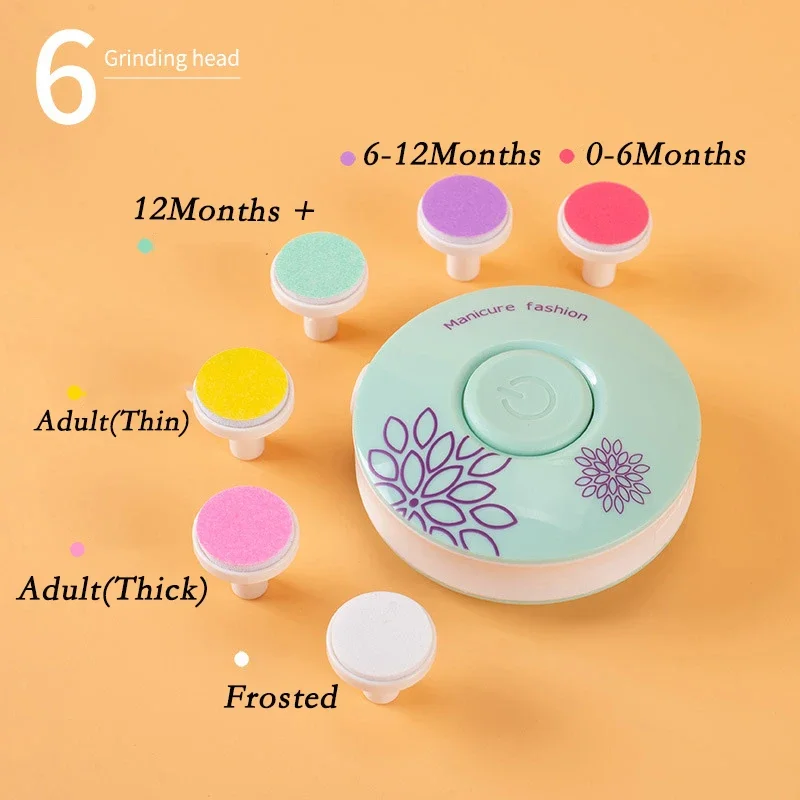 Recortador eléctrico para el cuidado de las uñas de bebés, cortaúñas para pedicura, cortador, tijeras pulidoras infantiles, cabezal de molienda para recién nacidos, 6 uds.