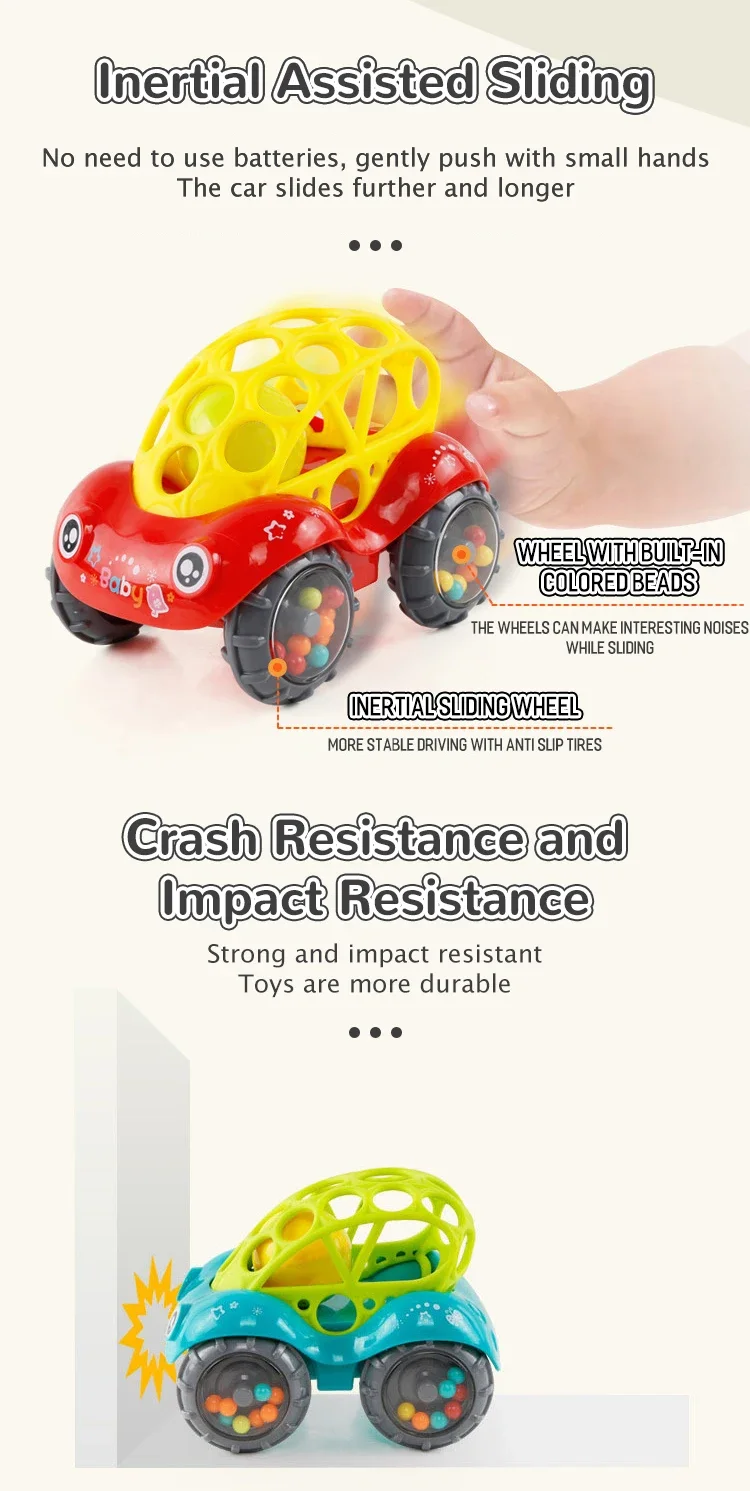 Regalo para niños, bola rodante lateral, cubo de concha suave, camión, juguetes educativos para niños pequeños, sonajeros con forma de coche de juguete para niños