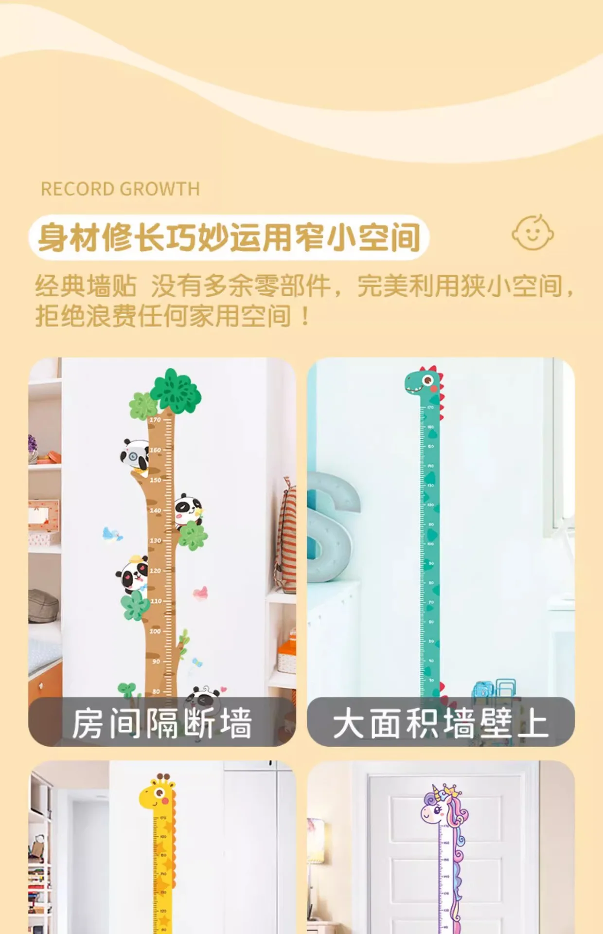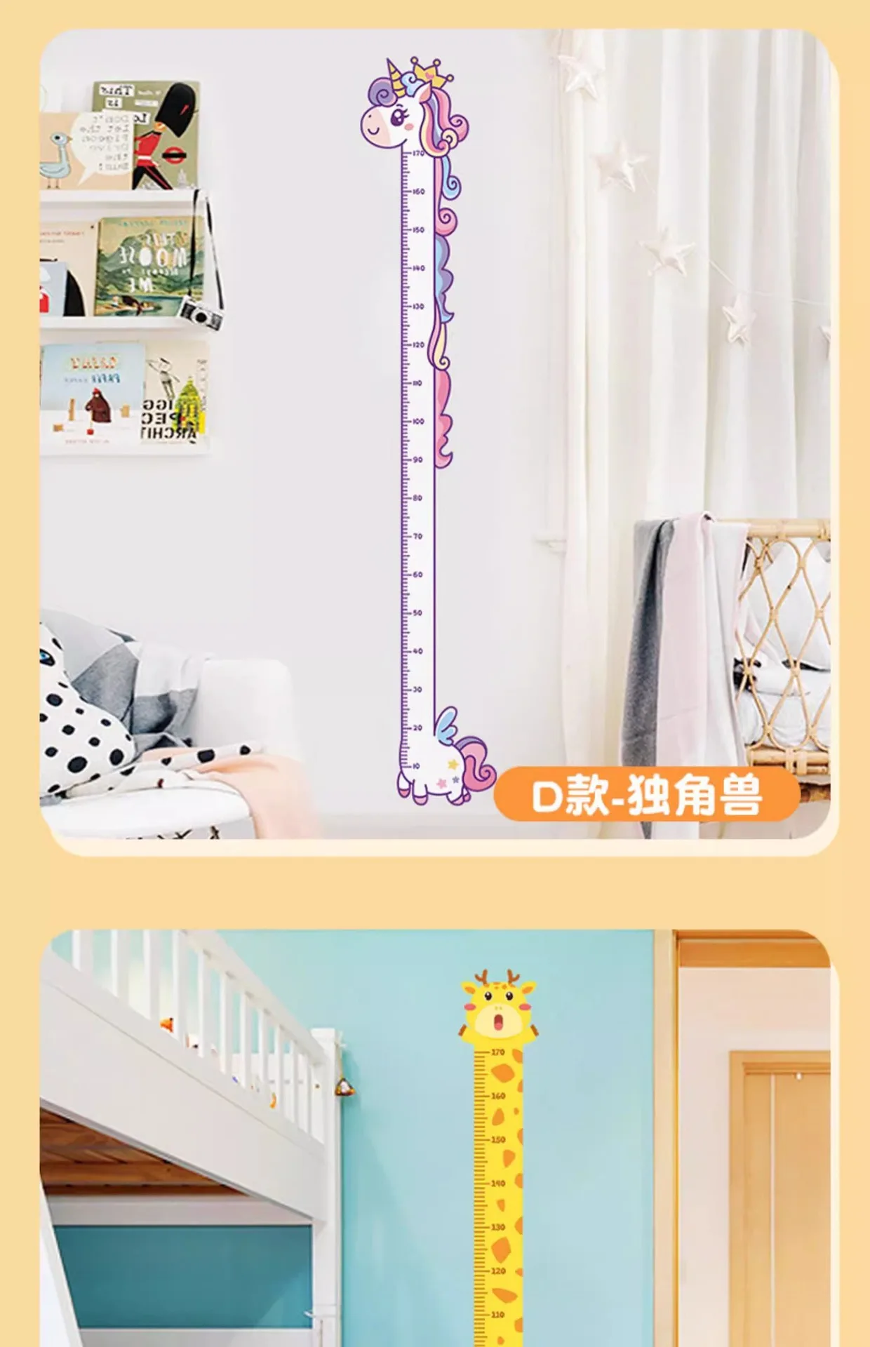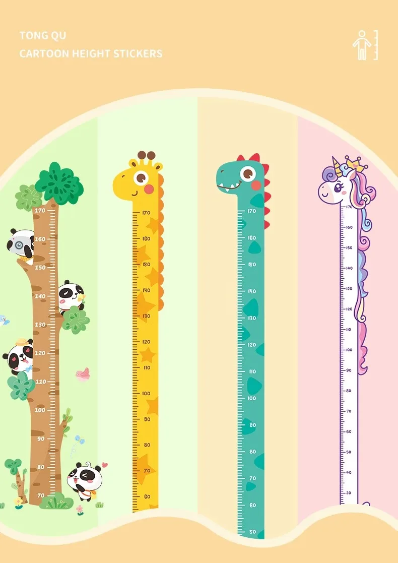 Regla de altura de animales de dibujos animados para bebé, pegatina de medida, papel tapiz de jirafa para habitación de niños, guardería, tabla de Regla de crecimiento infantil, Mural
