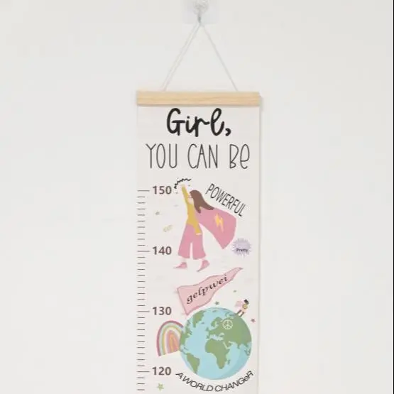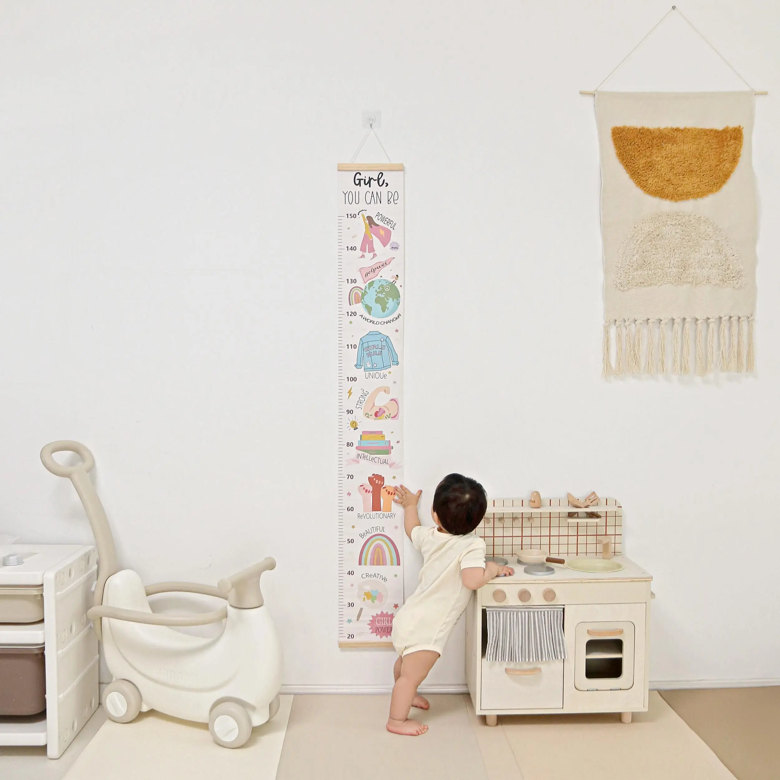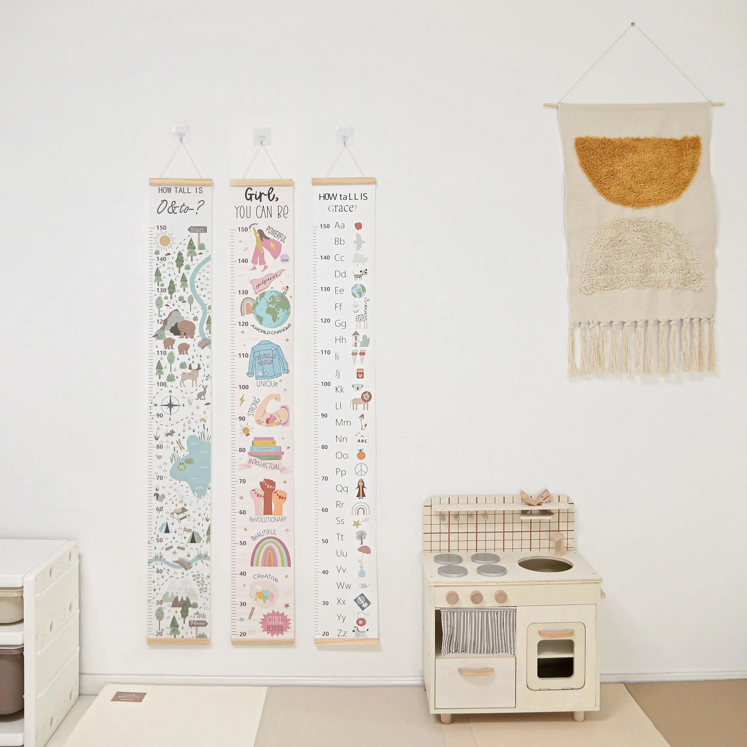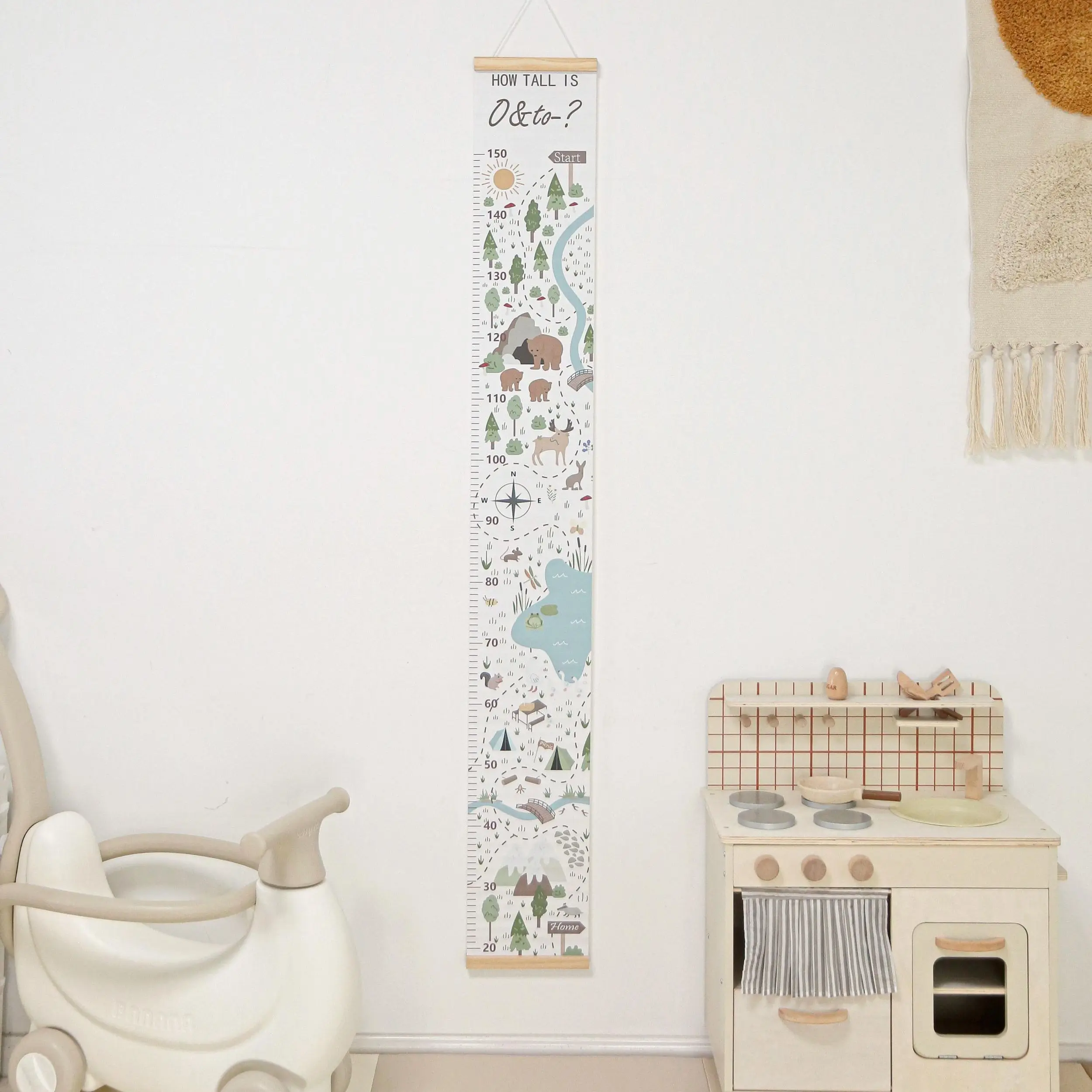 Comprar Regla de altura de lona de madera para bebé, decoración de dibujos animados, pegatina de pared de medición de altura, accesorios de tiro extraíbles, nueva